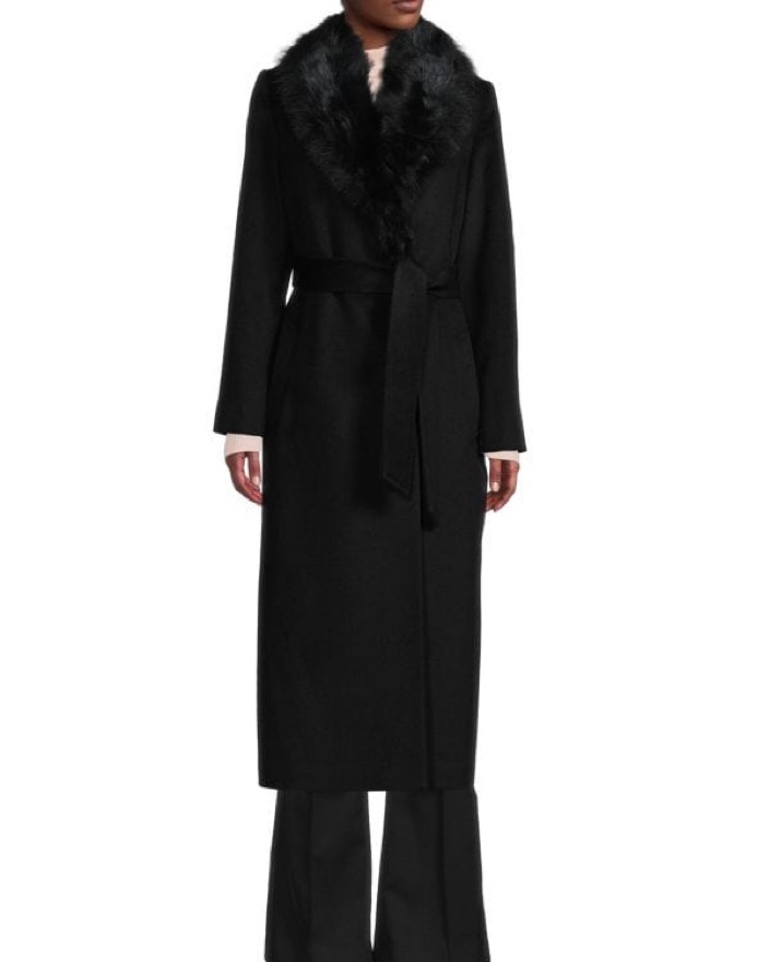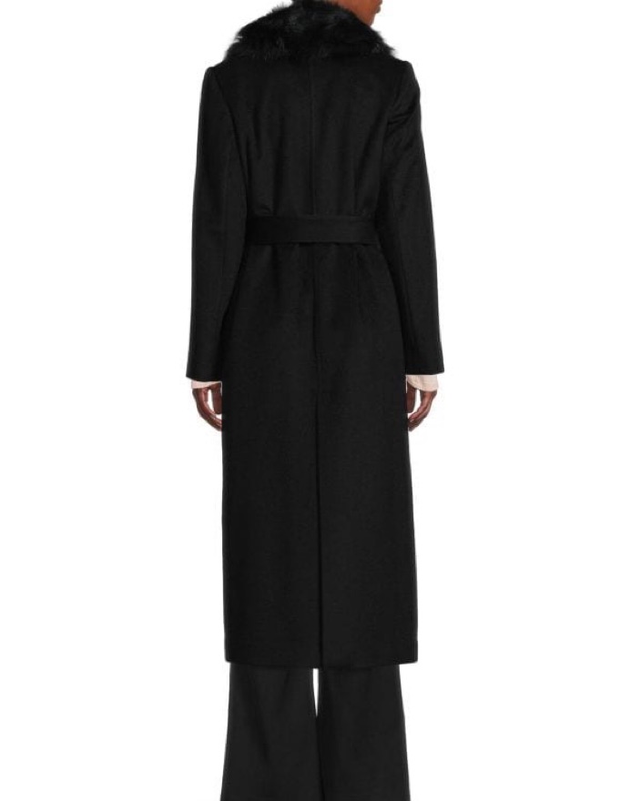 Elegant Black Shearling Collar Coat by Sofia Cashmere - Pickle