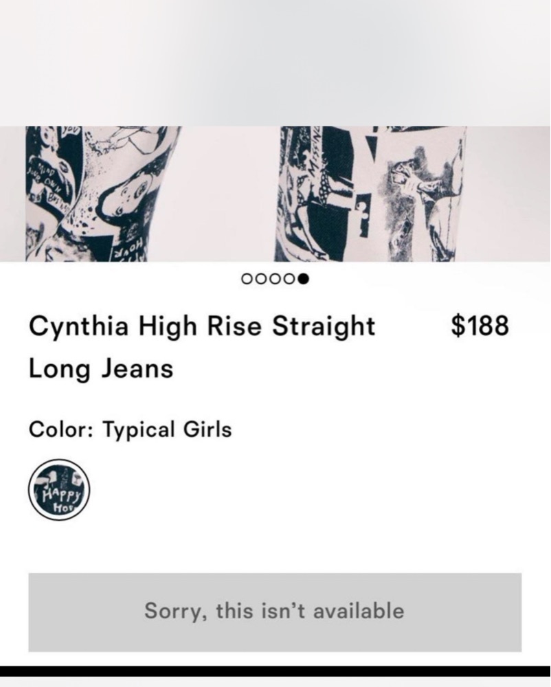These high-rise straight leg jeans feature a bold, eclectic graphic print that adds a touch of edge and personality to any casual ensemble.