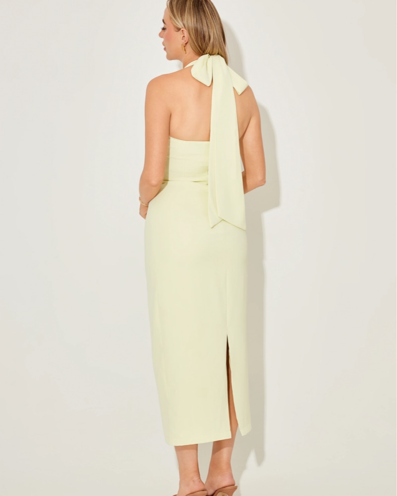 The Ultimate Muse V-Neck Midi Dress. Size small. In lime cream. Worn once & dry cleaned thereafter!