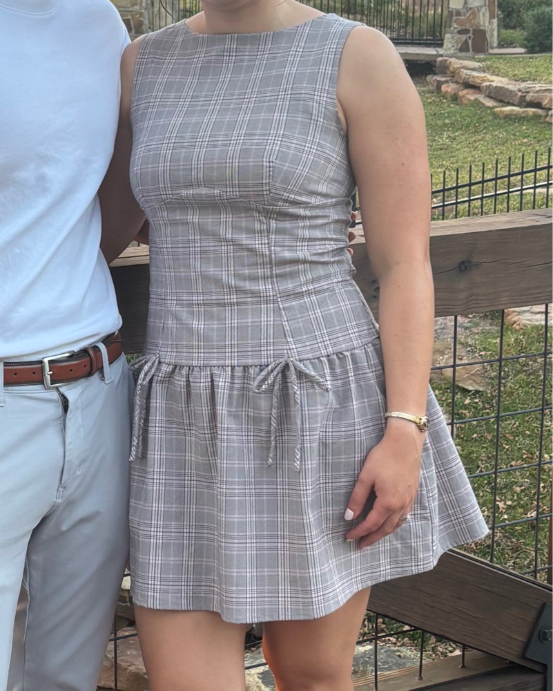 Taupe Plaid Fit & Flare Mini Dress by love fire - Pickle