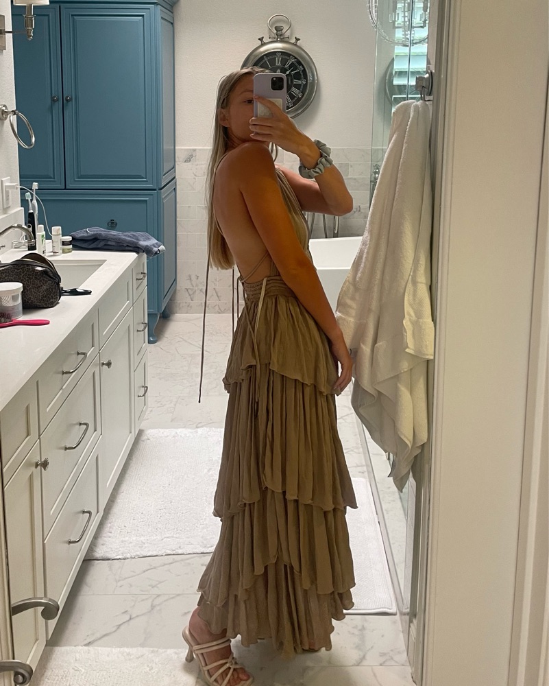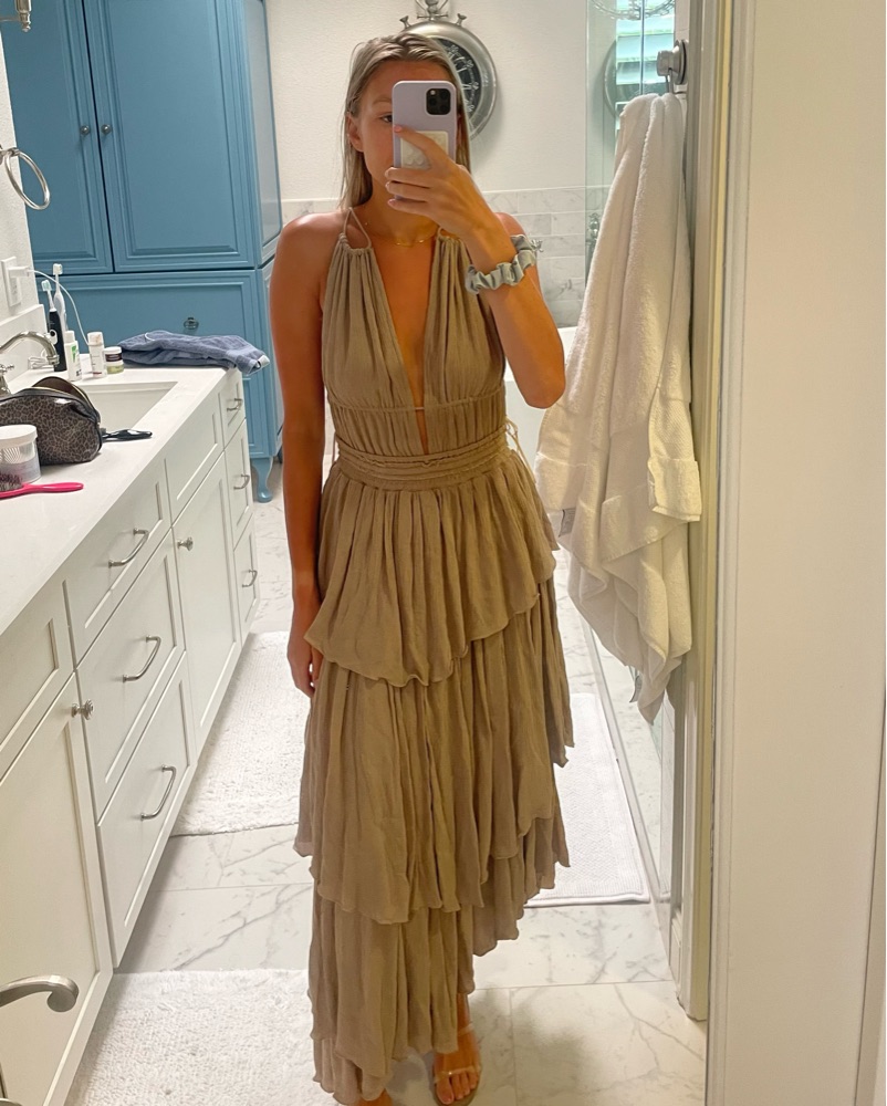 Cotton material free people dress. Has adjustable ties, great for a beachy wedding!