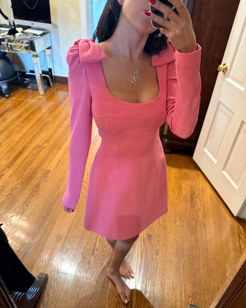 Size 4, I’m 5’4 120-125 lbs. structured bows, a line, scoop neck. I wore with a 60s hair style, think high pony with side swept bangs, super chunky high heels.