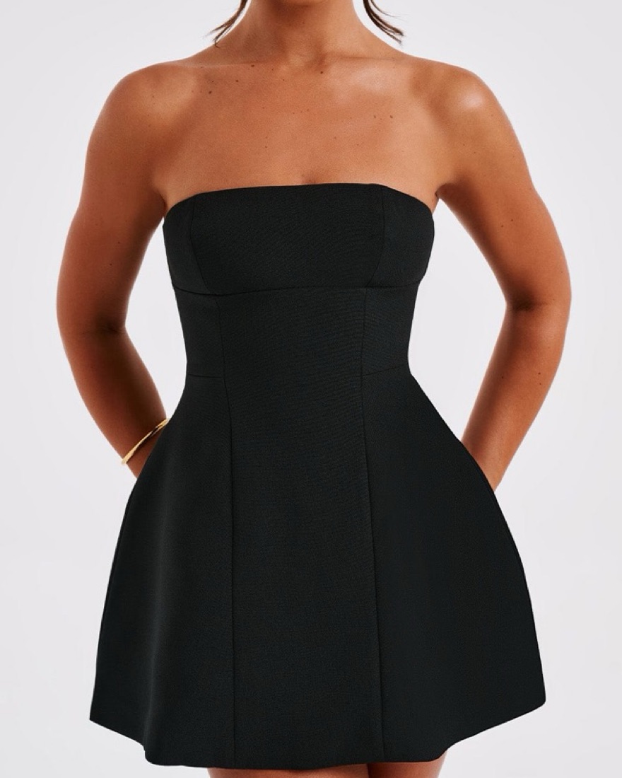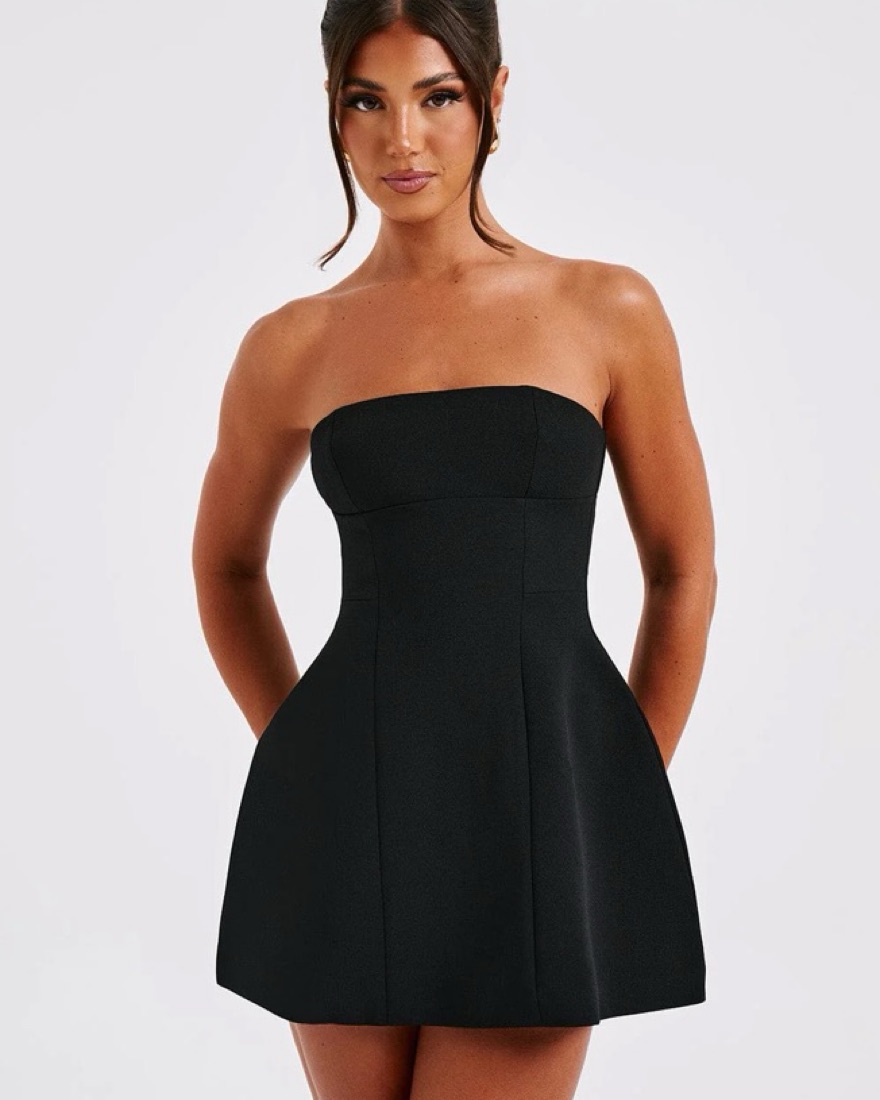 Simple and seriously chic, the Asha mini is this season's obsession. Perfect to wear for date nights, late nights and beyond, this strapless design is finished with seam details and a bubble shape skirt for extra volume.