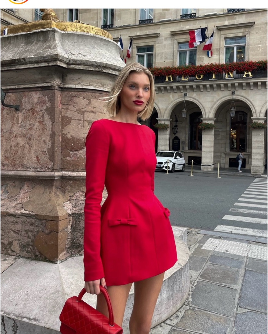 Cinched waist silthouette with bow accents . Christmas party ! Paired with red shoes and red bag . Warning ‼️ a renter broke the zipper and I had it replaced . Pls be mindful and be careful when zipper . If you can’t zip it , then don’t wear it . Fits 0-2 ! Doesn’t stretch at all. Very stiff