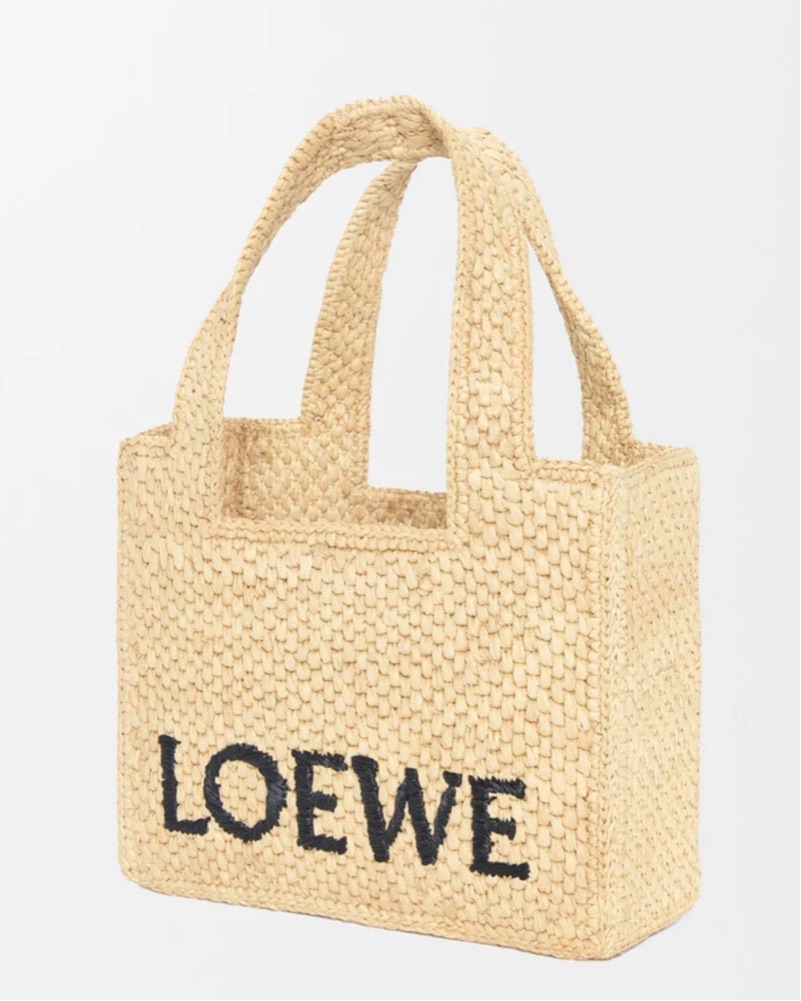 Mini LOEWE Font tote in raffia