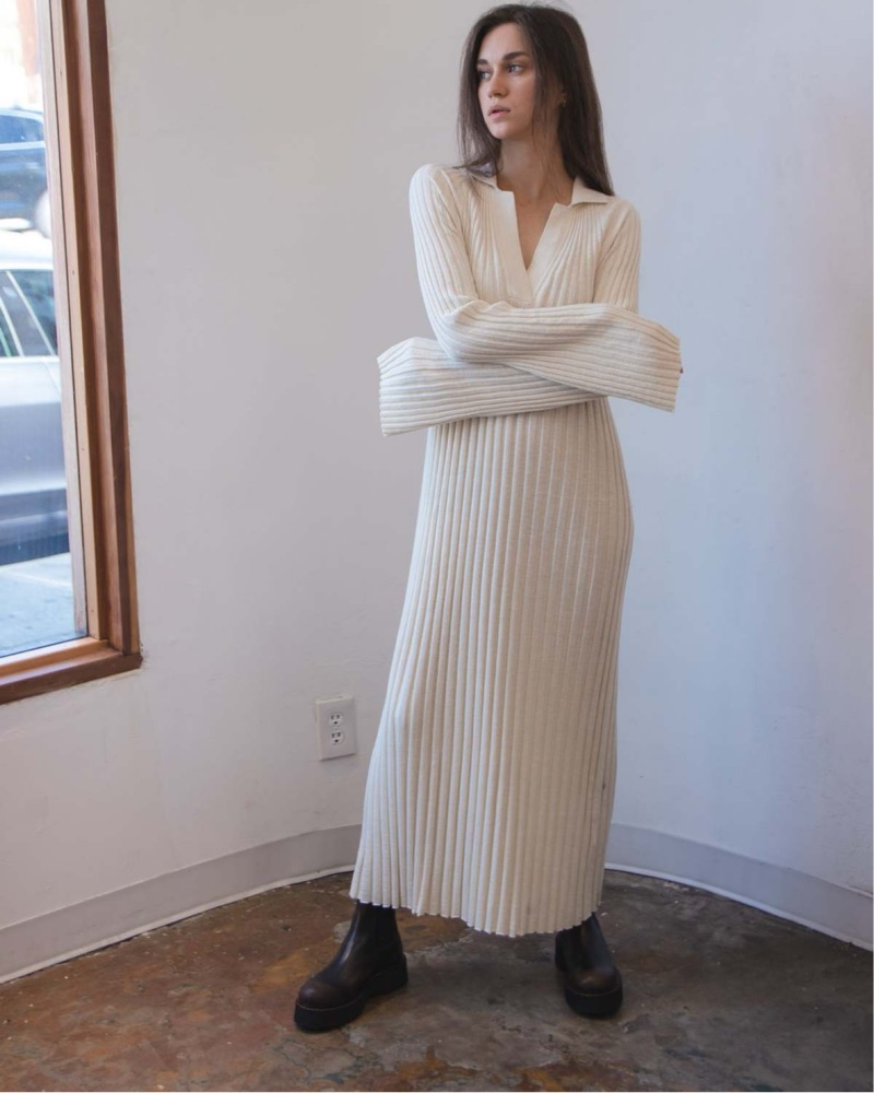 Silk/cotton midi dress with collar by Loulou studios. Can be dressed up or down! -LH