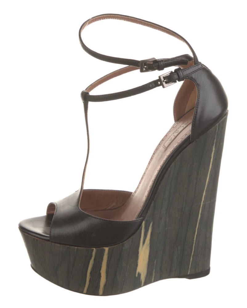 Alaïa T-Strap Wedges by Alaia - Pickle