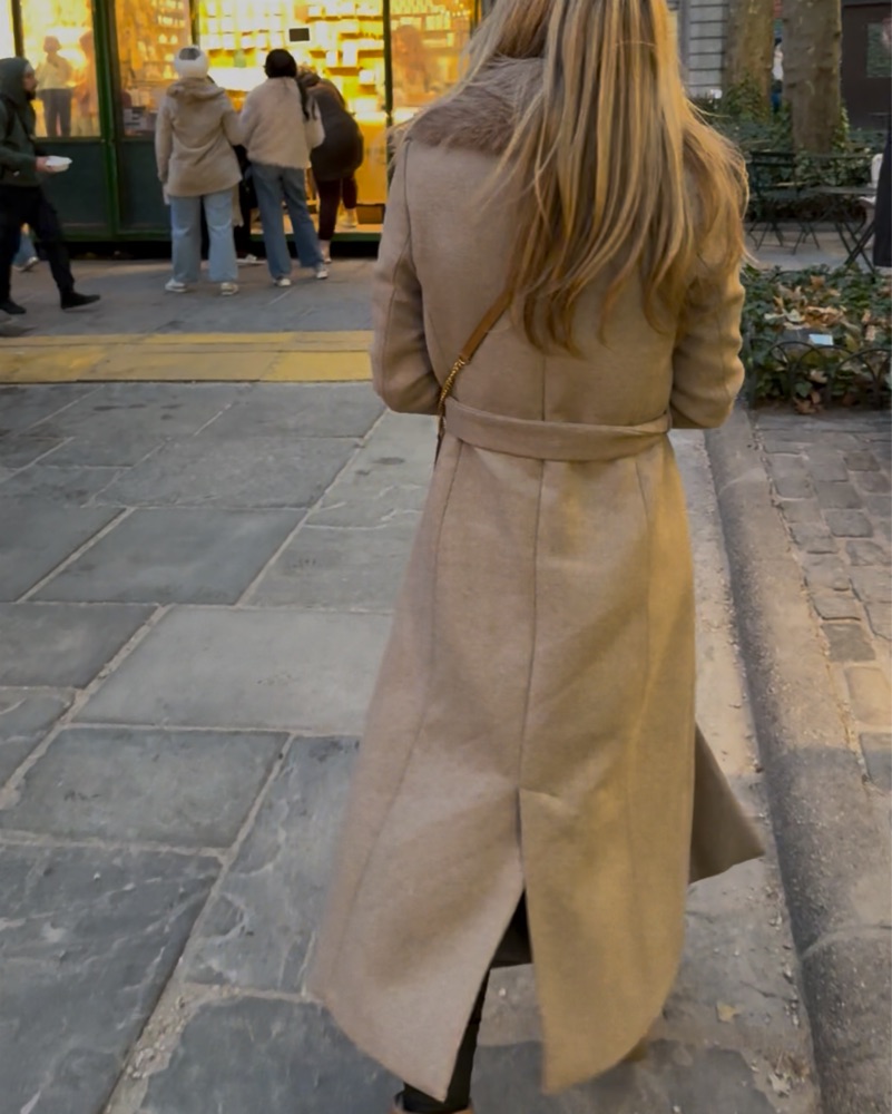 Zara Wool Blend & Fur Trim Long Coat Tan