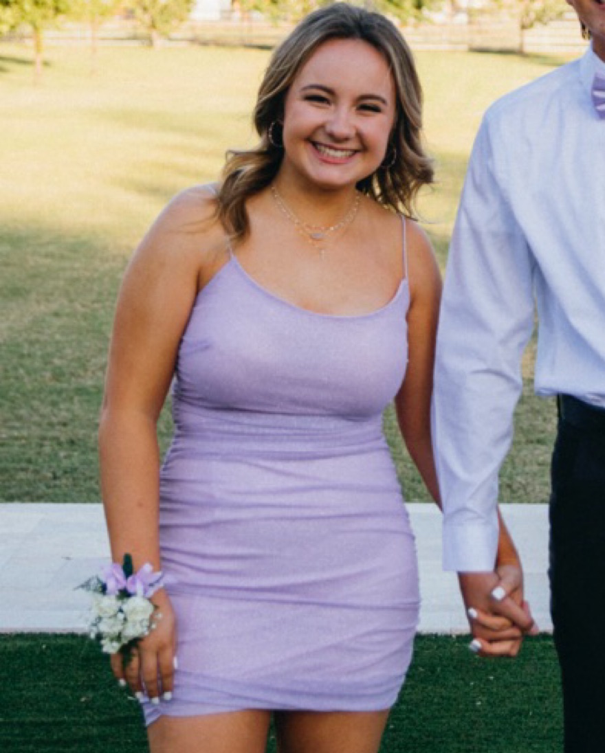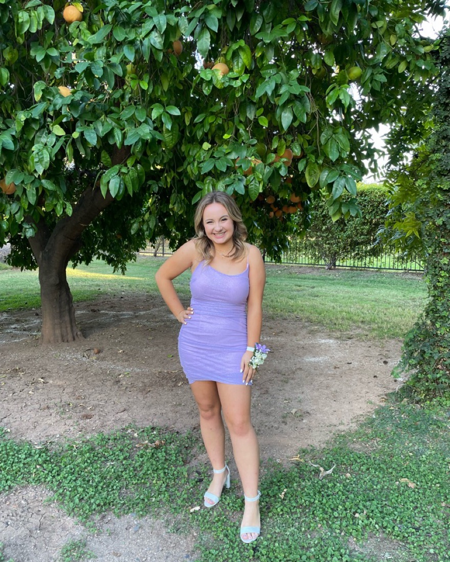 Wore for homecoming, women’s medium. Form fitting and extremely flattering, mini dress, glitter, violet, purple color