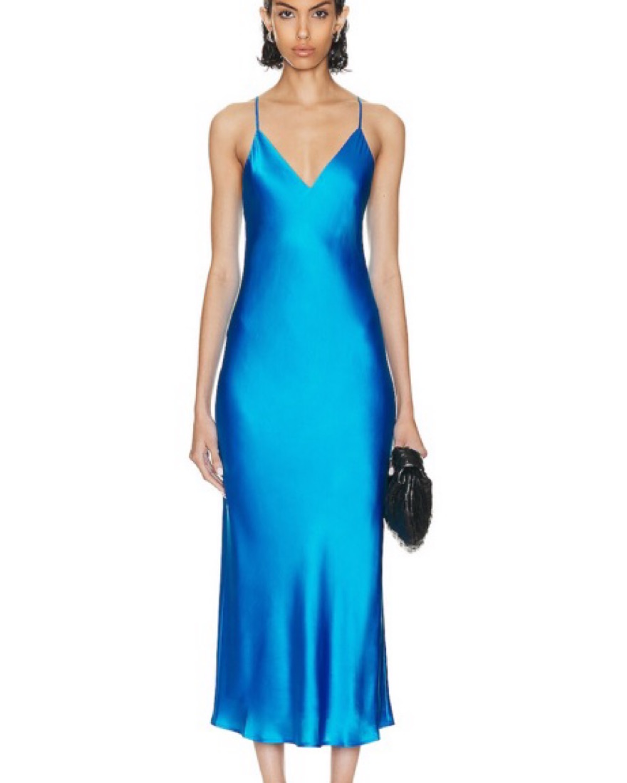 L’Agence Blue Silk Slip Dress