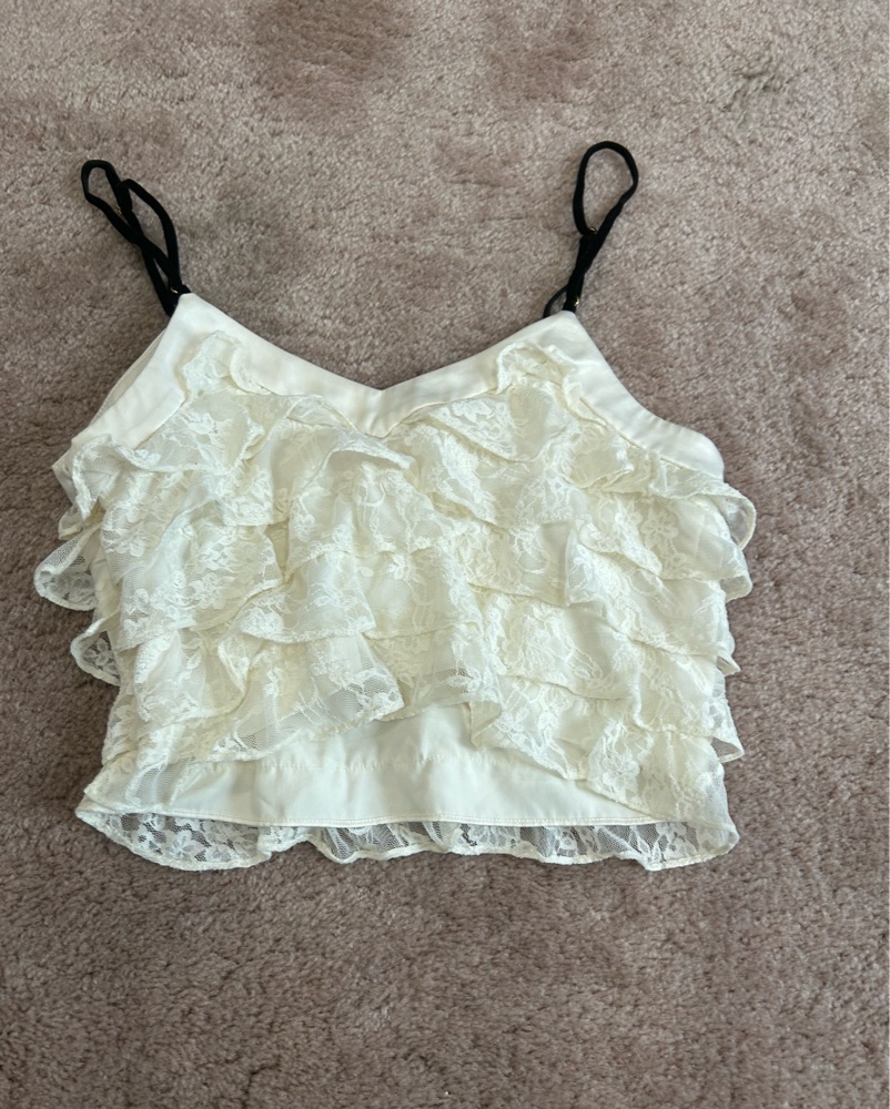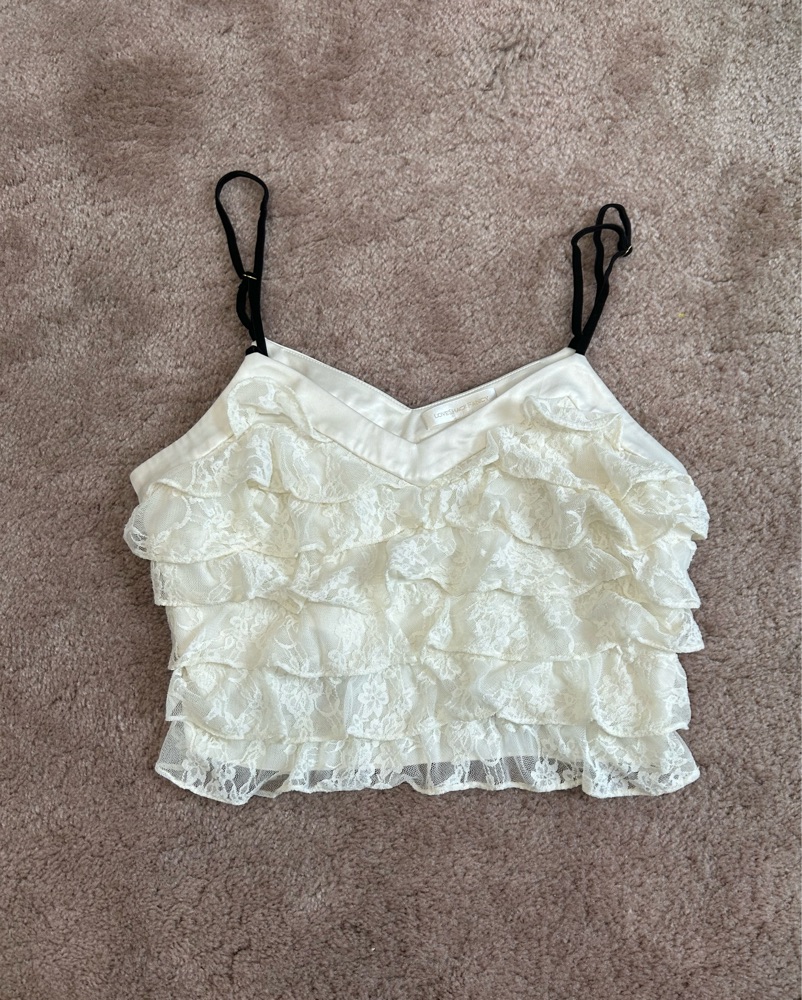 Cream lace tank top with spaghetti straps from loveshackfancy in perfect condition. Perfect fit going out!