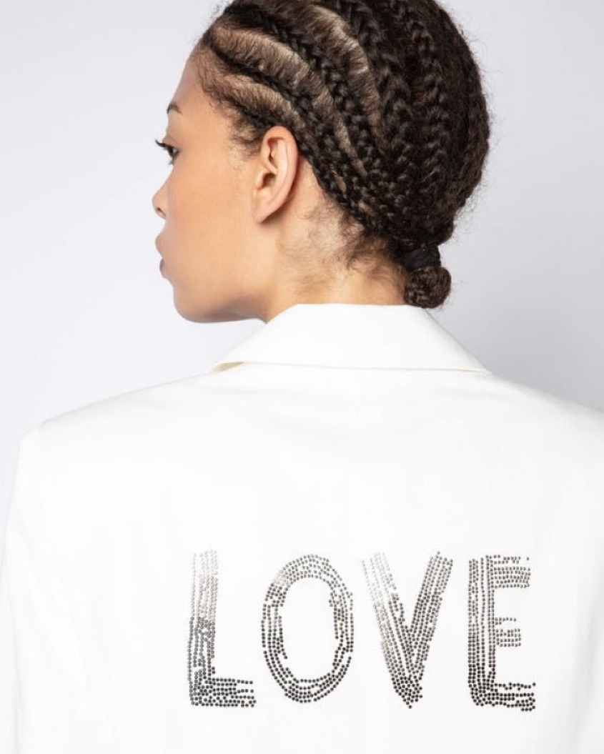 Zadig & Voltaire Victor silver Svarovski strass Love blazer in white. Brand new. Never worn. Tags still on. Size 36EU. Coukd fit an XS or a S.