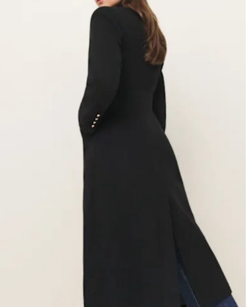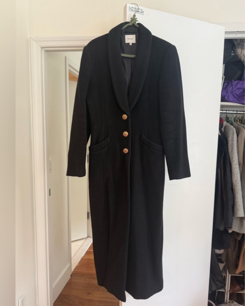 Beautiful long black wool coat, used for half a season. 3-gold buttons. Absolutely gorgeous and in like-new condition, just no longer needed