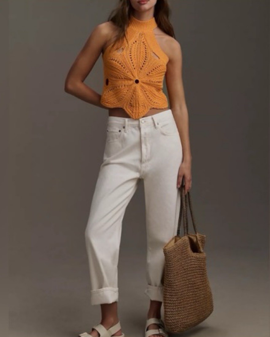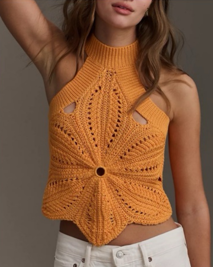 By Anthropologie Halter Flower Crochet Sweater Tank