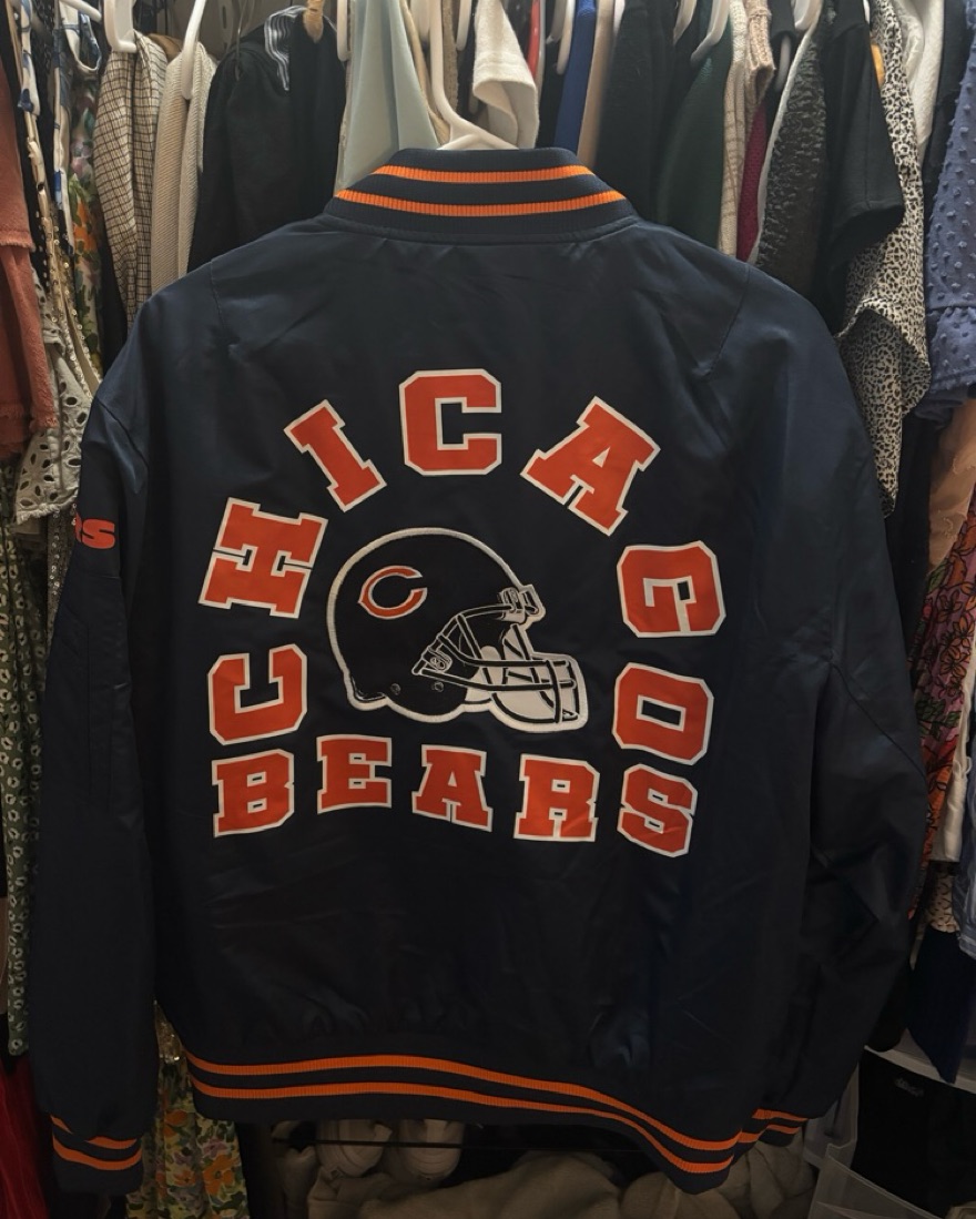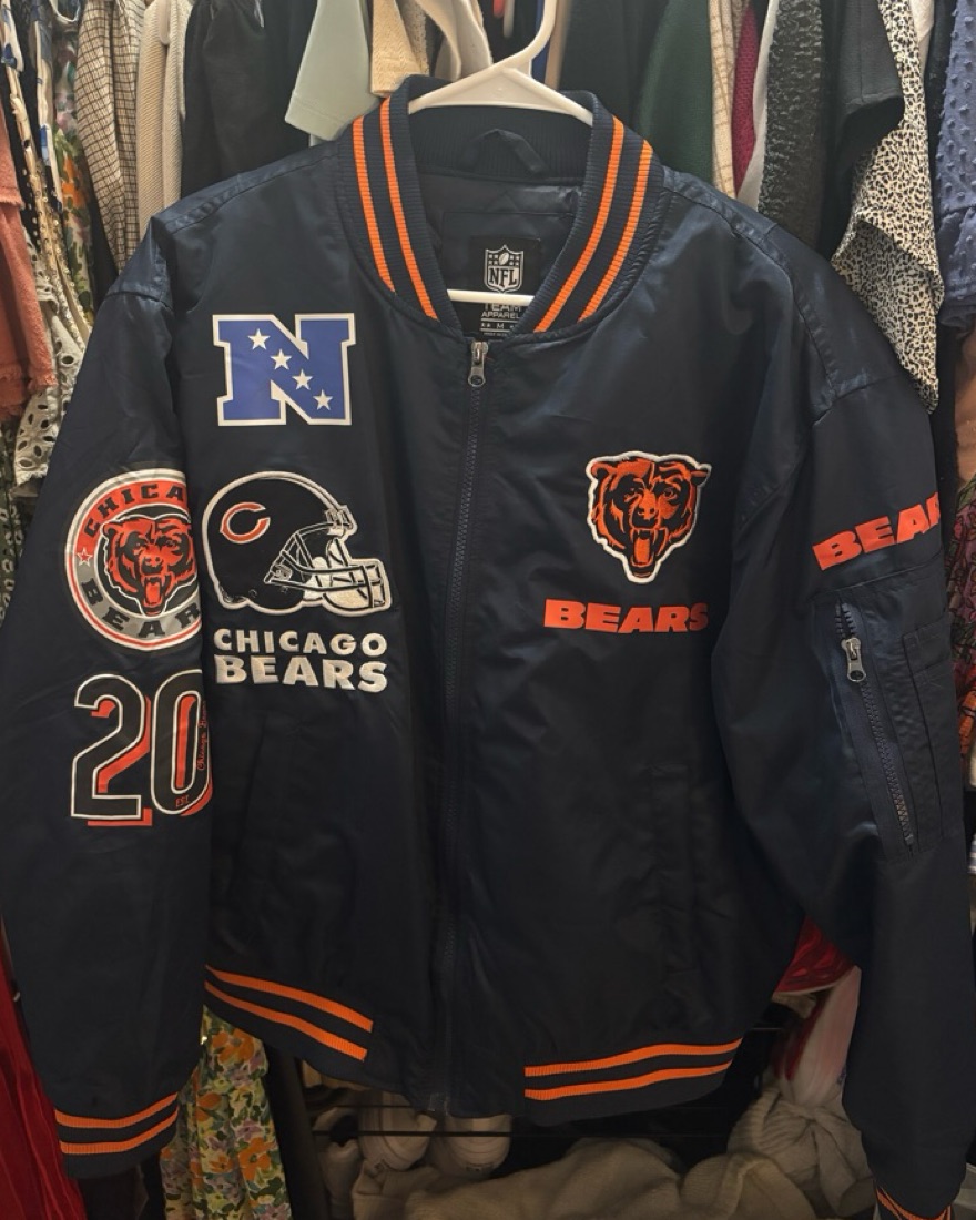 This Chicago Bears bomber jacket is perfect for game days or casual outings. Worn once - so many compliments! Size Medium, fits TTS. Sized up from a small for an oversized fit on me 🐻