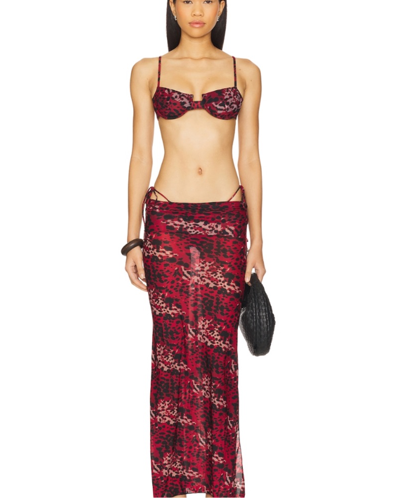 Indah Red Cheetah Bikini & Skirt Set