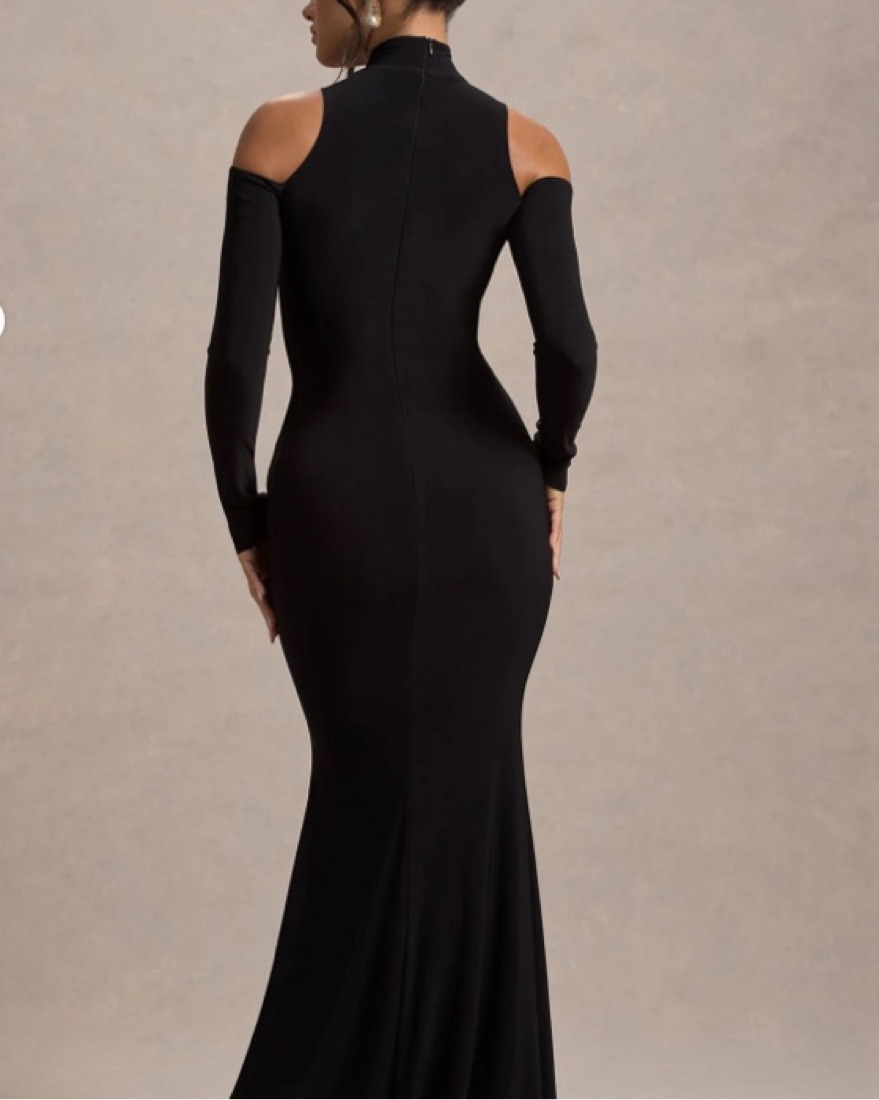 Elegant Black Cold Shoulder Gown by Club L London - Pickle