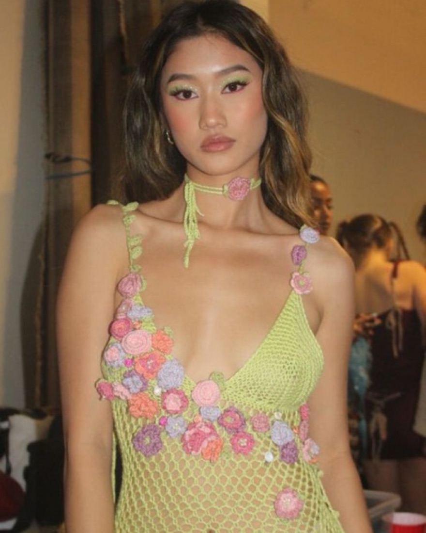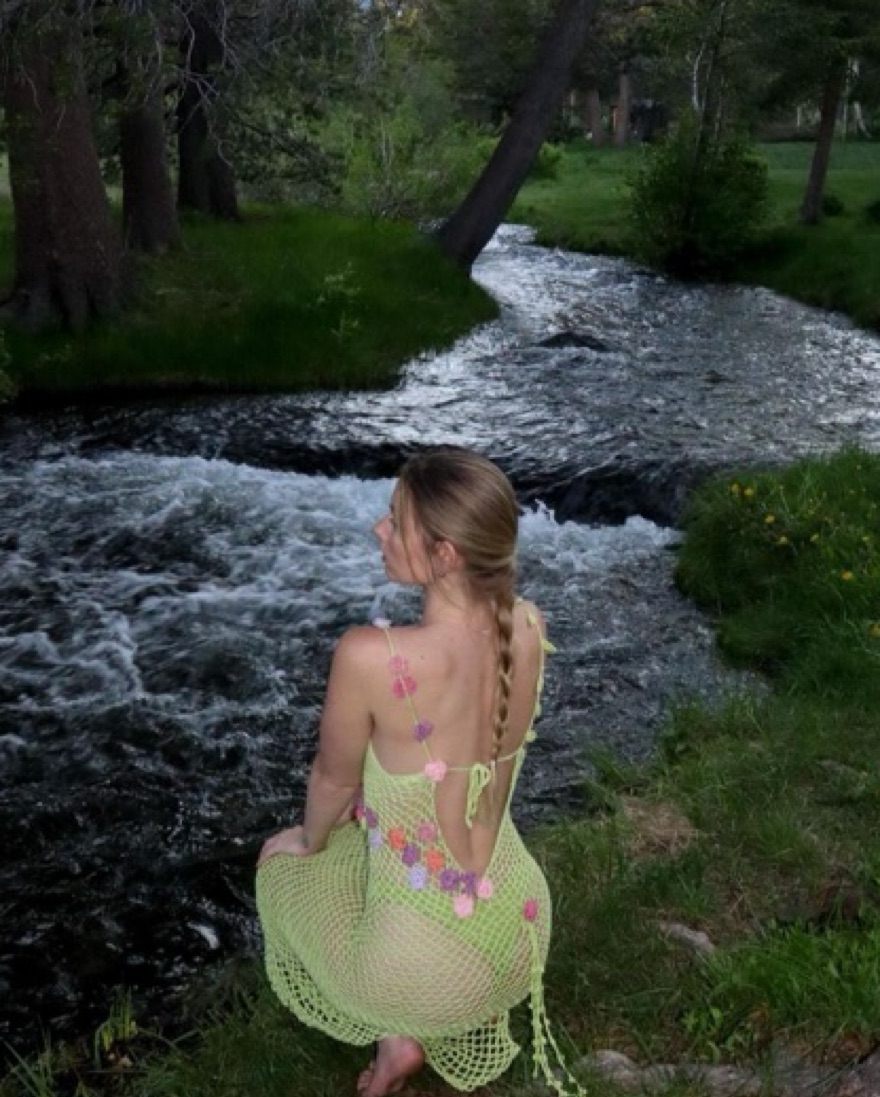 Green crochet dress with crochet flowers and beading. Handmade by a friend. Sheer bottom does not come with under wear fits XS-S PS these are my film photos I’m a photographer IG is linked in bio!