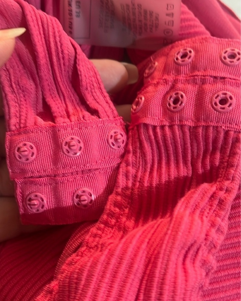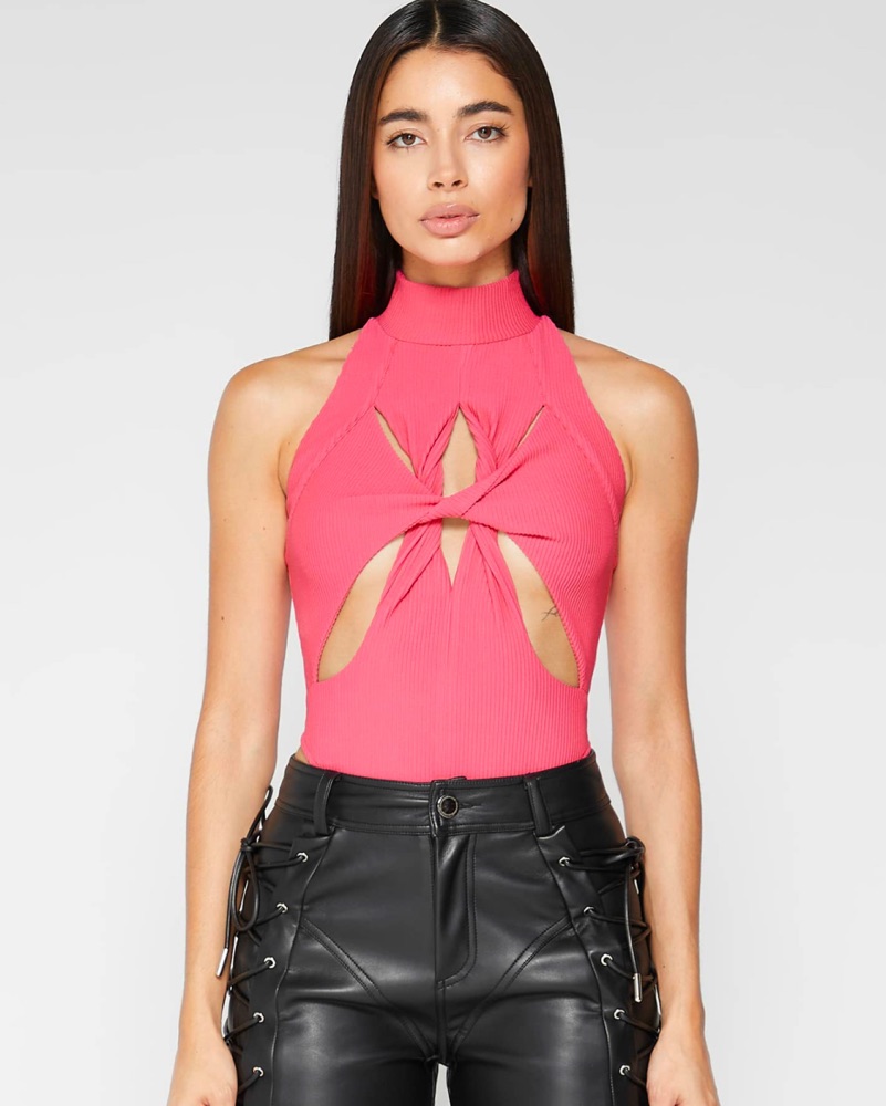 This bodysuit features carefully place cut-outs and twisted detailing to compliment your chest. The high neck accentuates your shoulders for a flattering physique. Snaps underneath. Thick, comfy material.