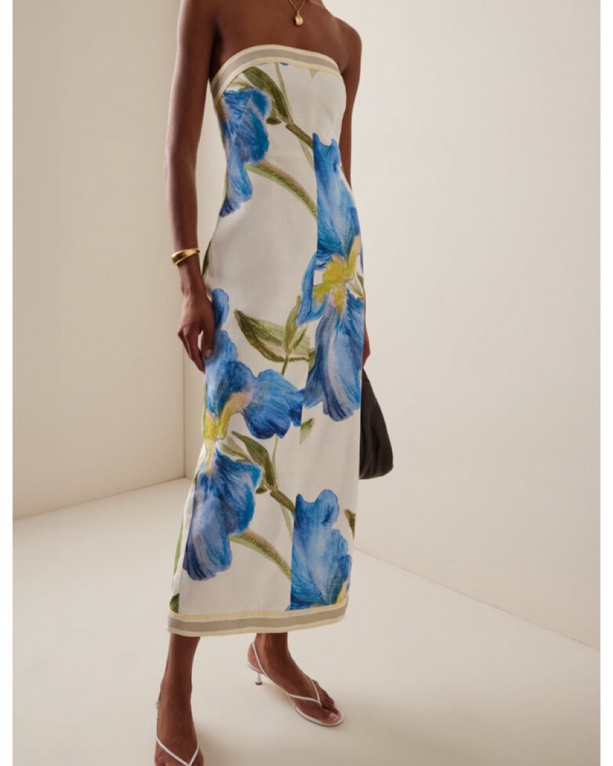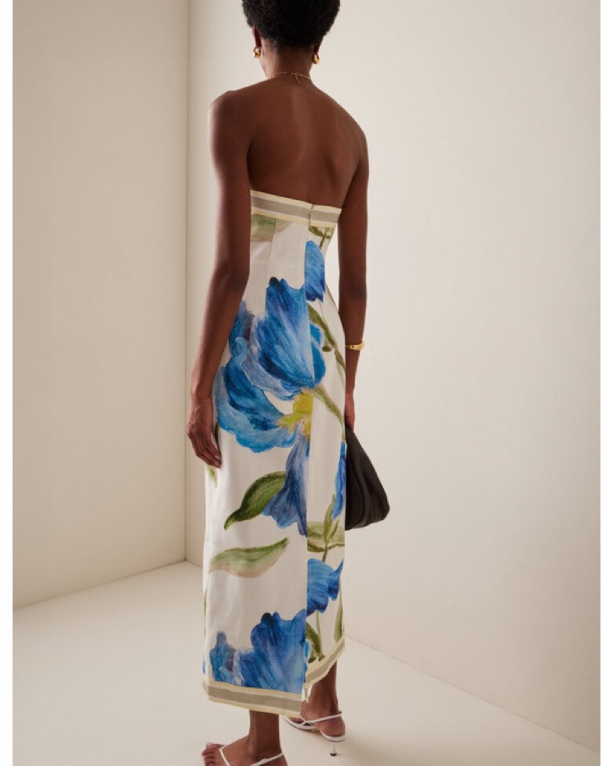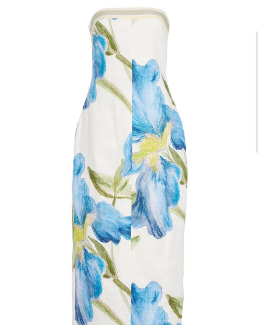 Significant other Blue off white midi floral upscale dress. Strapless, all class dress. Never worn, wearing to 1 wedding this summer. Sold out on Moda Operandi!