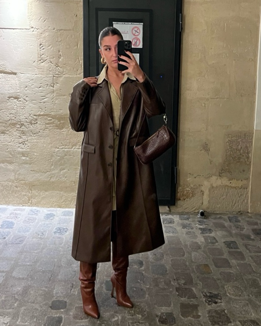 Chocolate brown leather trench coat from a boutique in London. Fits small-medium oversized.