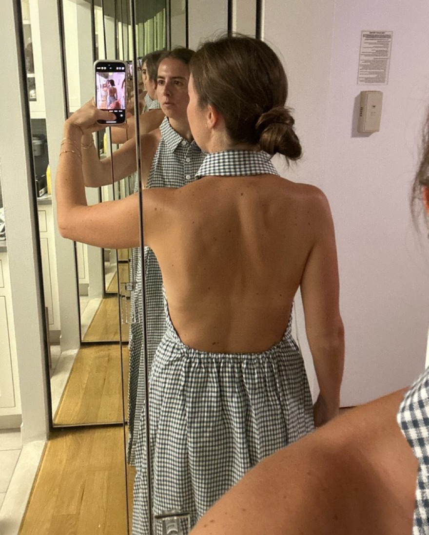 Super cute summer fit! Size 4 but a little loose around the chest.