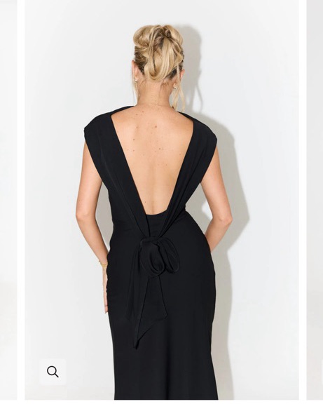 If elegance was a dress, she would be it muses. Adorned with delicately draped shoulders that lead into an open low cut back and creates a sophisticated high cowl neckline to complete this flattering party favourite, where simplicity creates opulence.