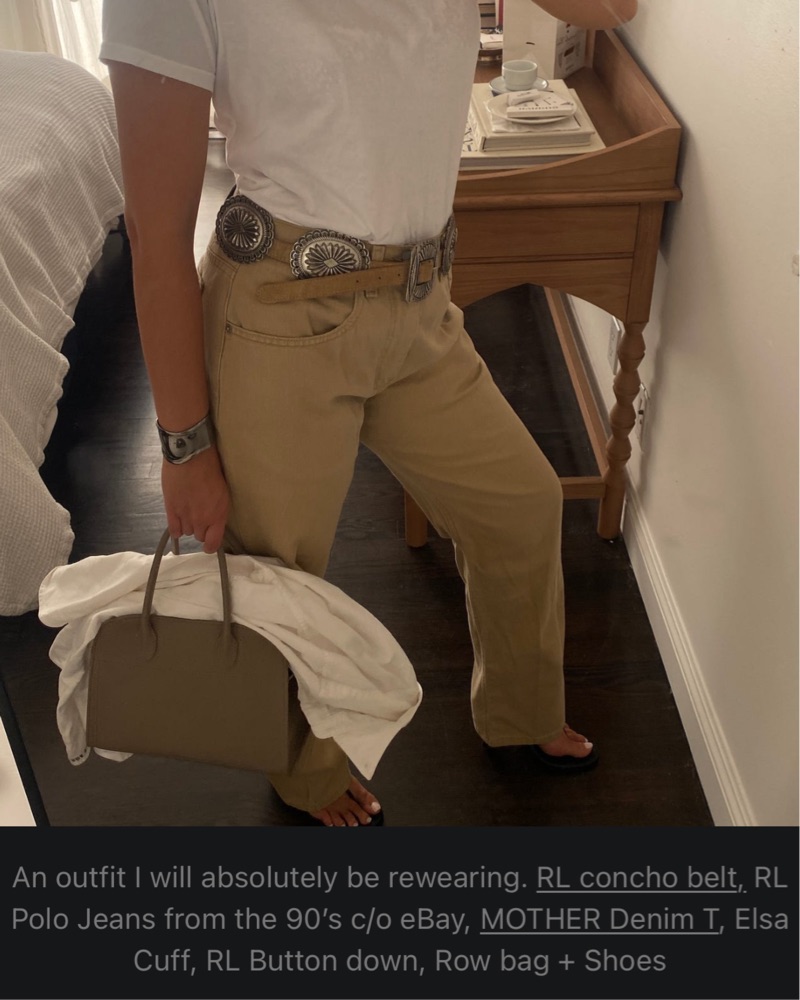Turquoise RL Leather Western Belt — shown styled on the millennial decorator in beige