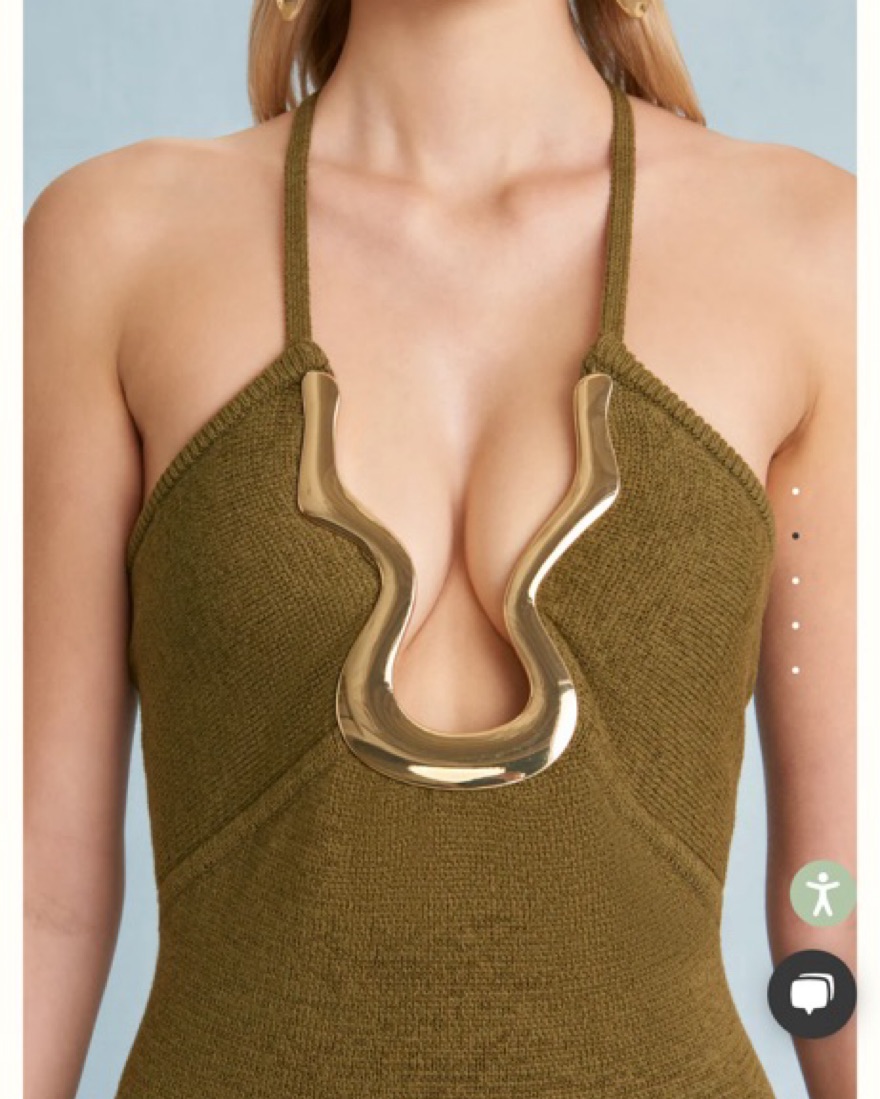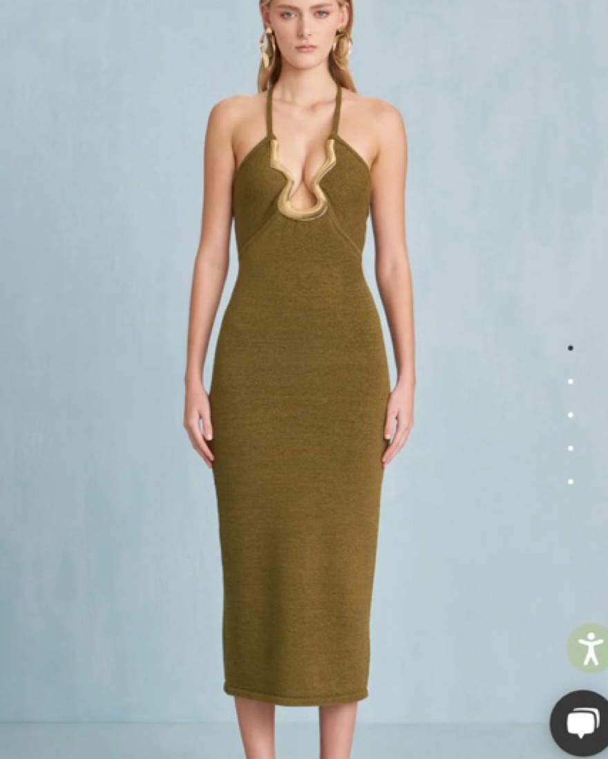Cult Gaia green body-con midi dress with gold toned hardware and plunging neckline. 100% refunds for rentals over $60 if notified immediately and returned same day. In person pick up only.