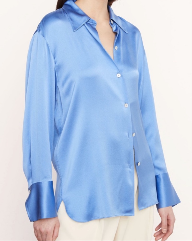 Vince Blue Satin Button-Down Blouse