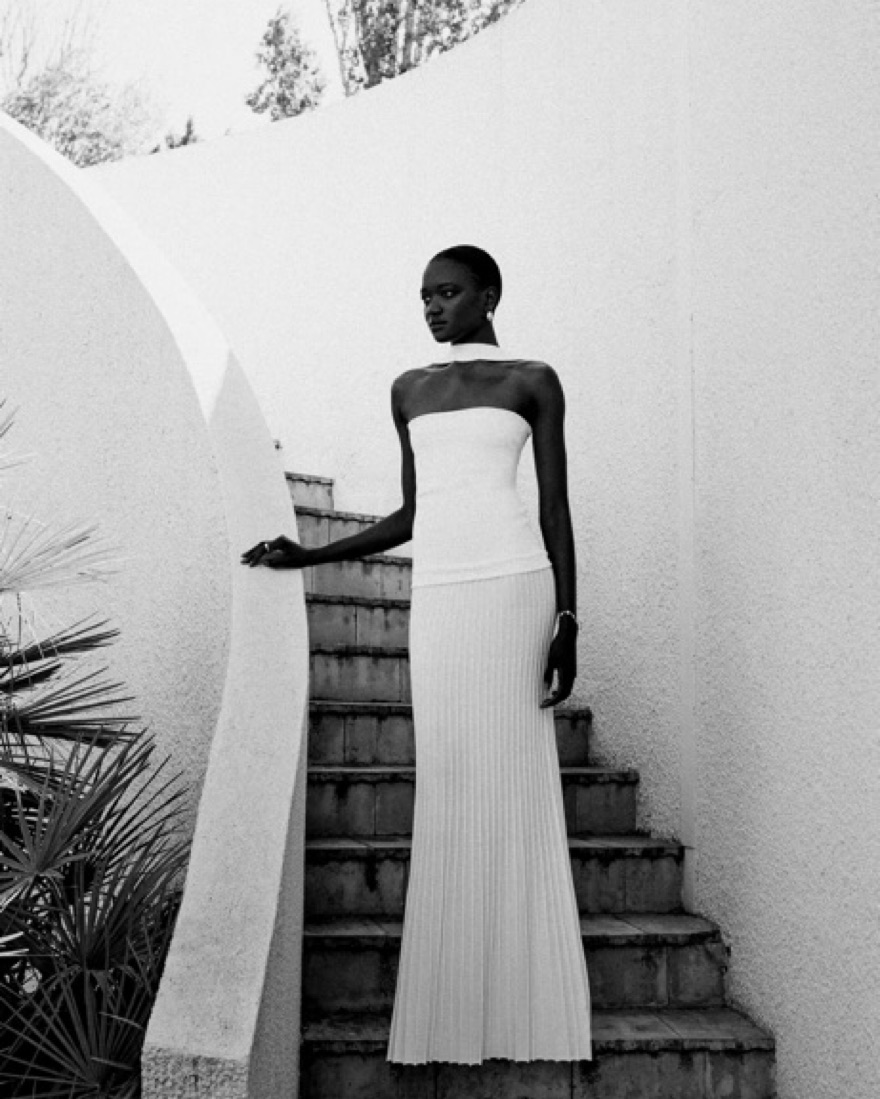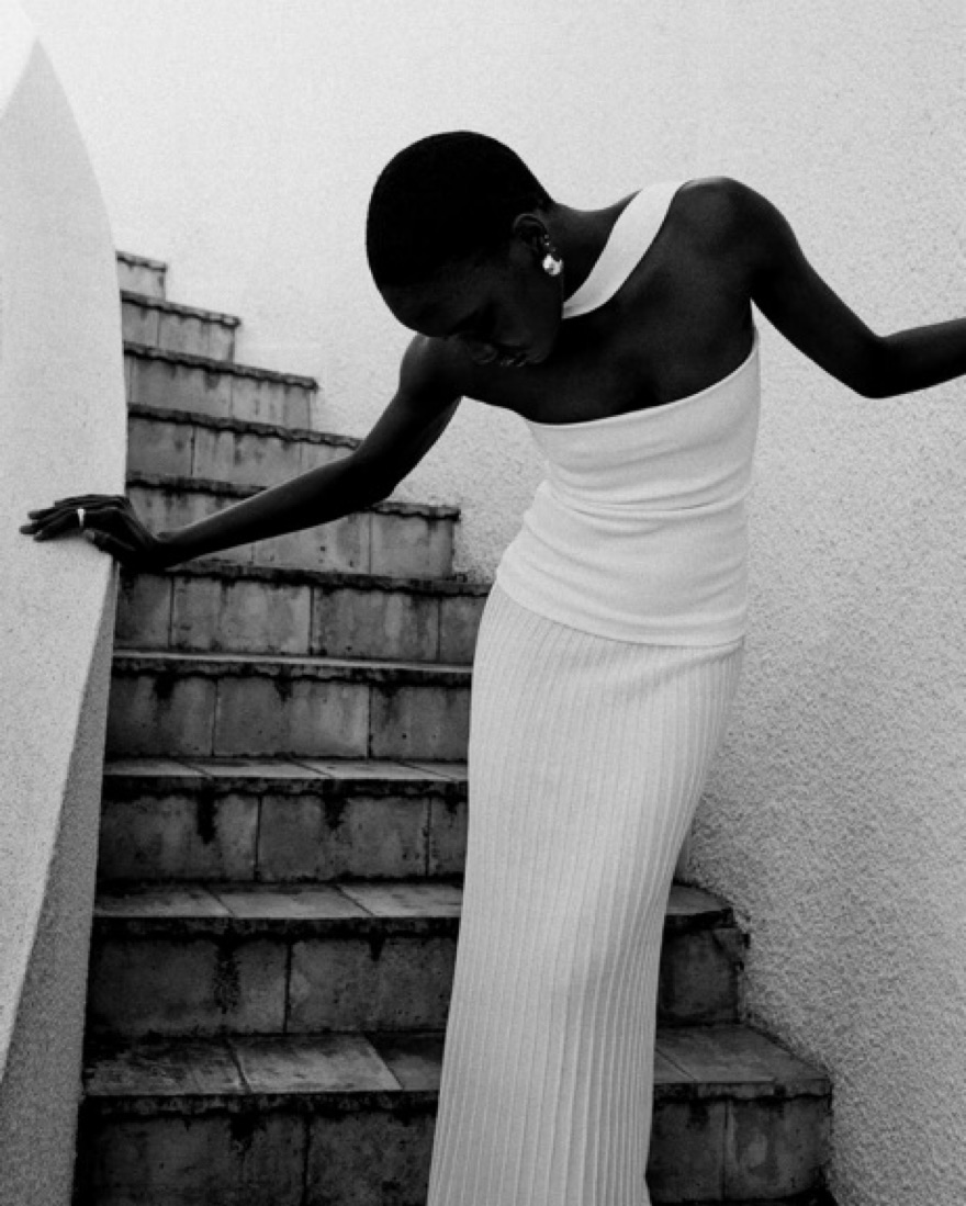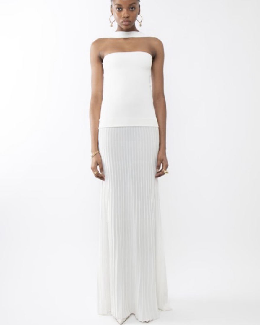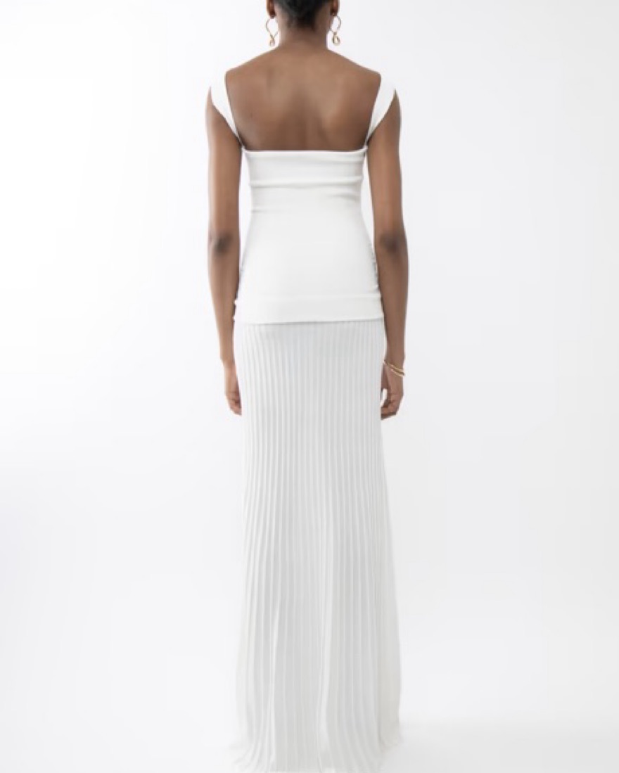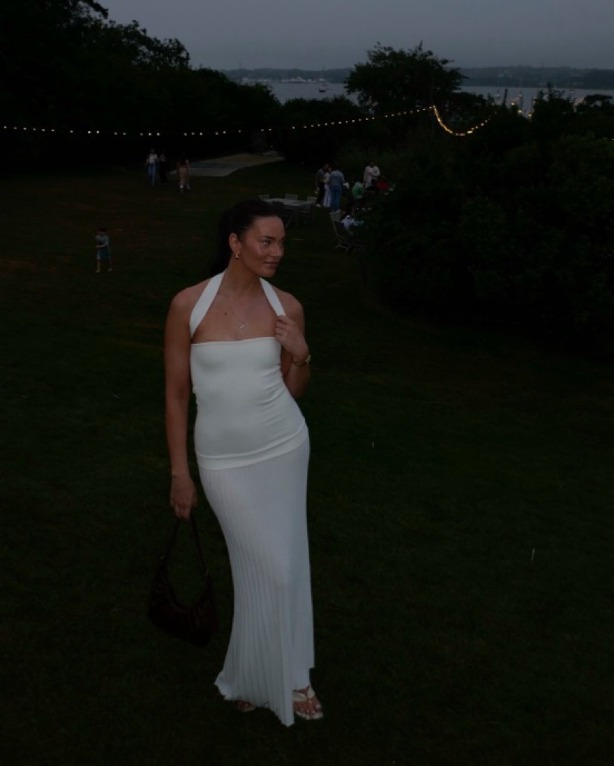 White drop waist dress from Arakii. Can change straps for neckline. Please be careful with stains & self tanner!