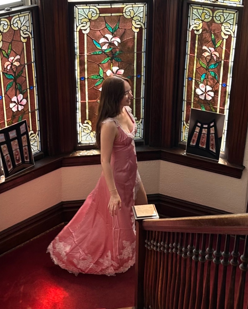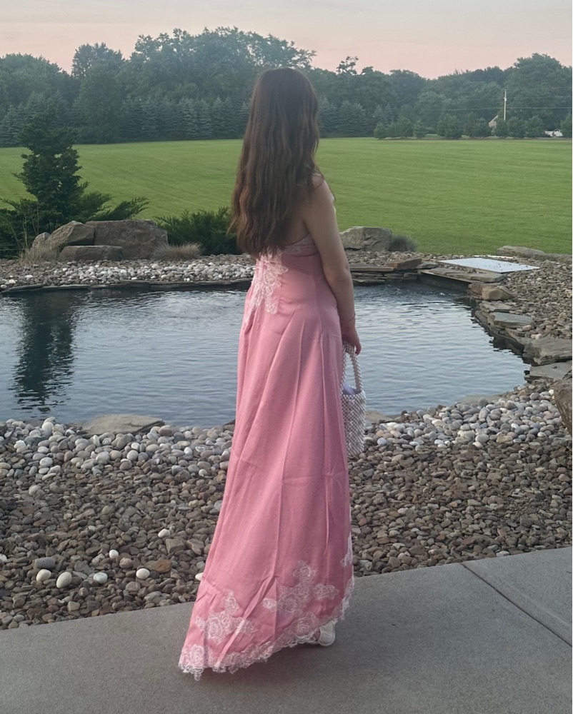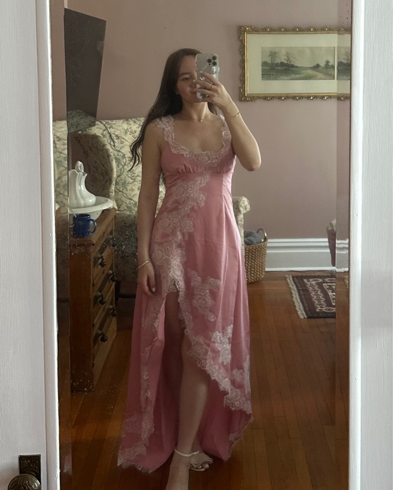Pink super cute dress with lace details from For Love & Lemons, worn once and super flattering for chest area and legs.