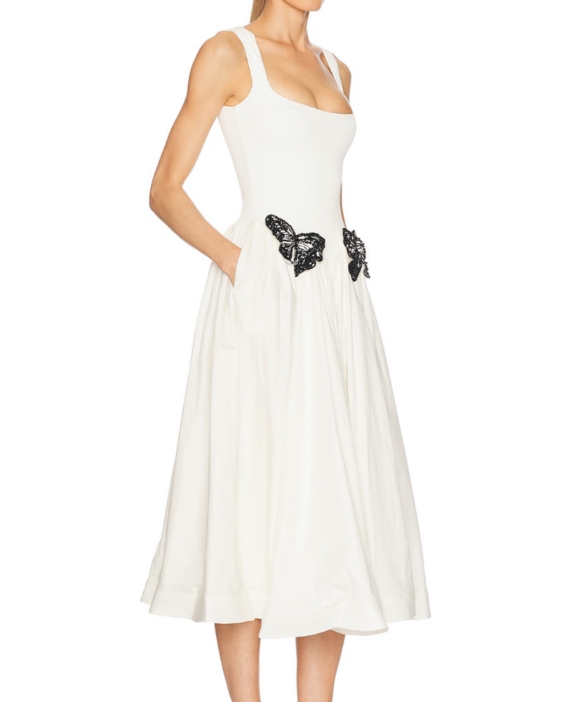 Size XS - Has a bodysuit in the dress. The butterflies can mold to whatever you like.