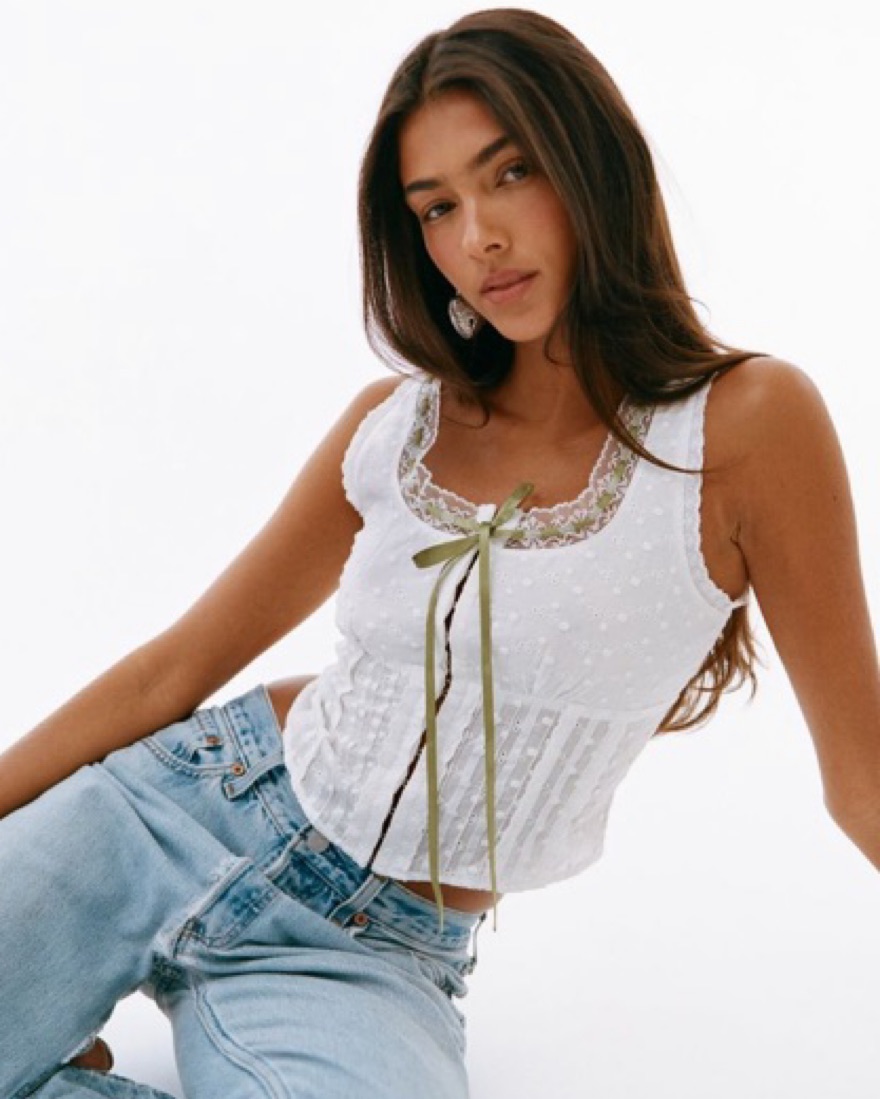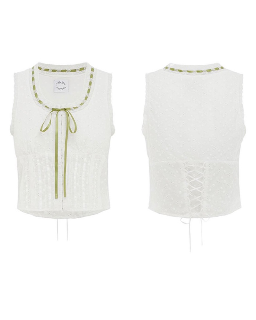 Classic white top with green accent ribbon