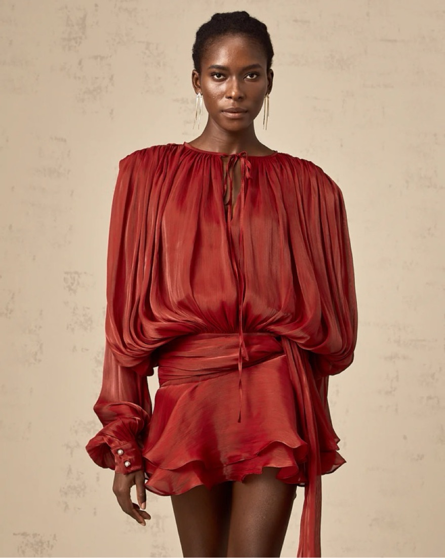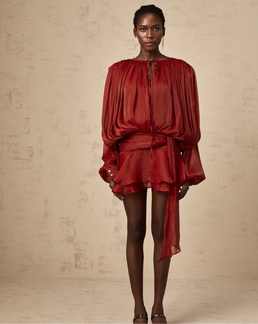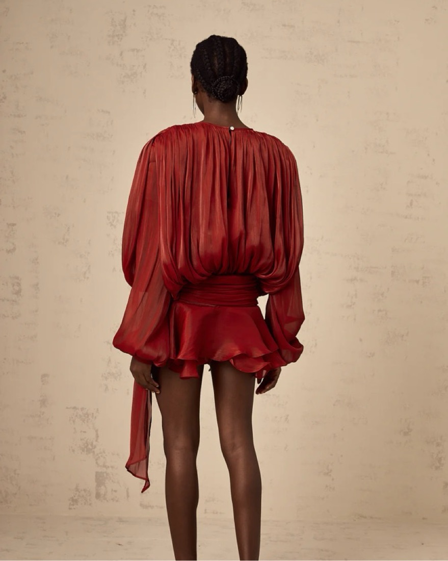 So beautiful & perfect for the holidays! Has a nice shimmer. Comes with matching shorts! The shorts don’t fit me but I wear it with the zipper half up! Runs small. There’s a small hole in the side that isn’t noticeable because of the billowing fabric.