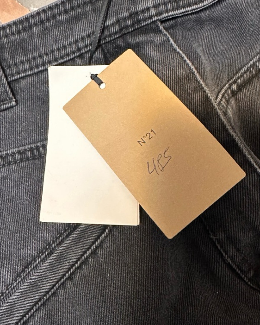 These brand new sleek and elevated denim skirt jeans from N.21 offer a sophisticated take on denim. They can be dressed up or down for a versatile look.