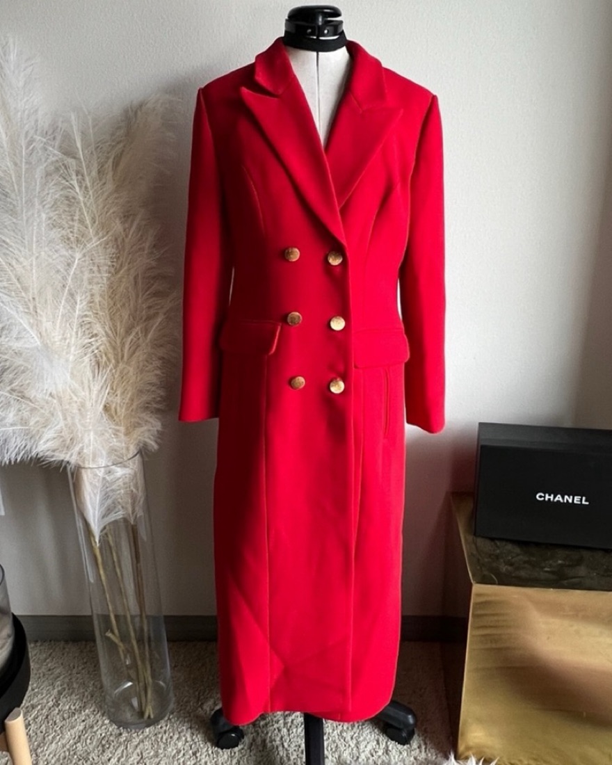 Long red coat by Elliatt with double breasted gold buttons. Fully lined. Size small and fits true to size. Perfect for the Holidays! ❤️