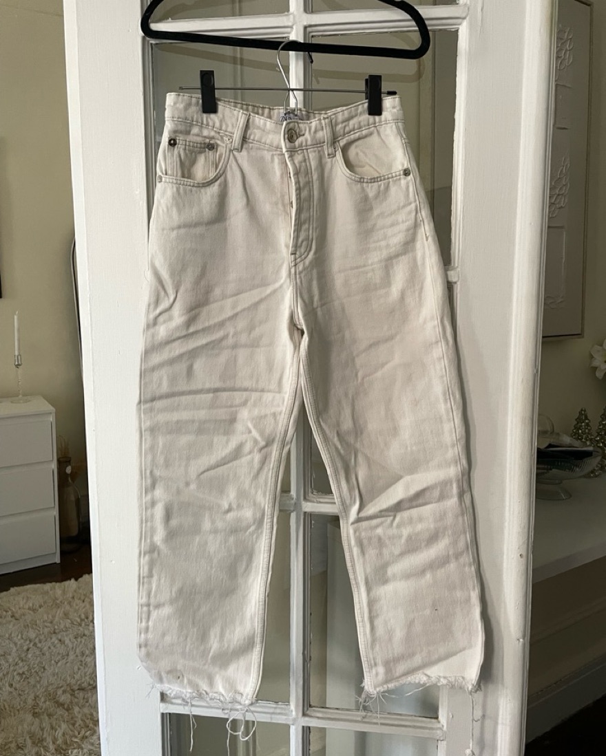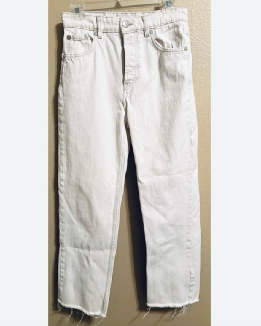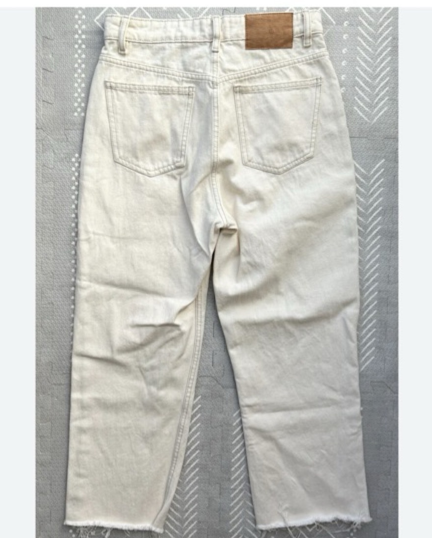 These high-waisted, straight-leg denim jeans have a classic, relaxed look that can be dressed up or down. Perfect for running errands or a casual weekend outing.