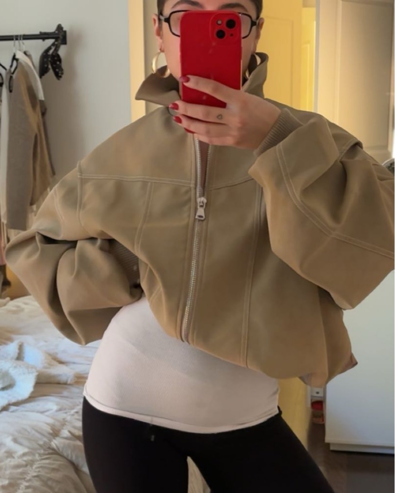 Tan Leather Bomber Jacket by Lioness - Pickle