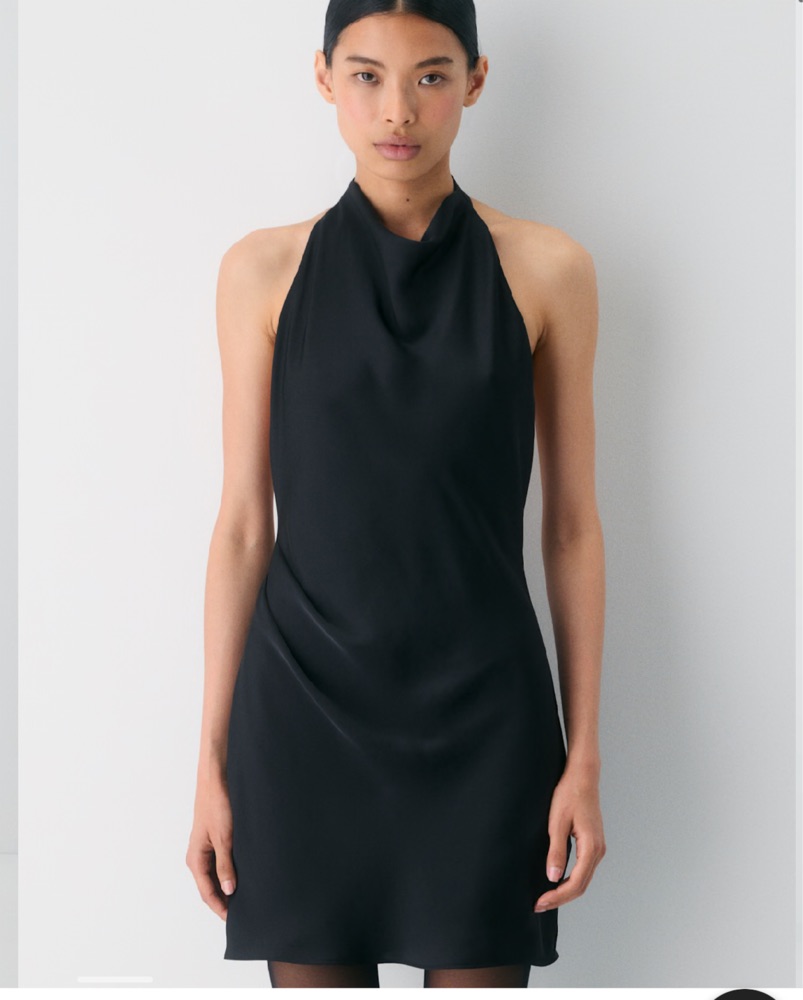black Aritzia Satin halterneck mini dress. backless and super flattering! Cowl neck.