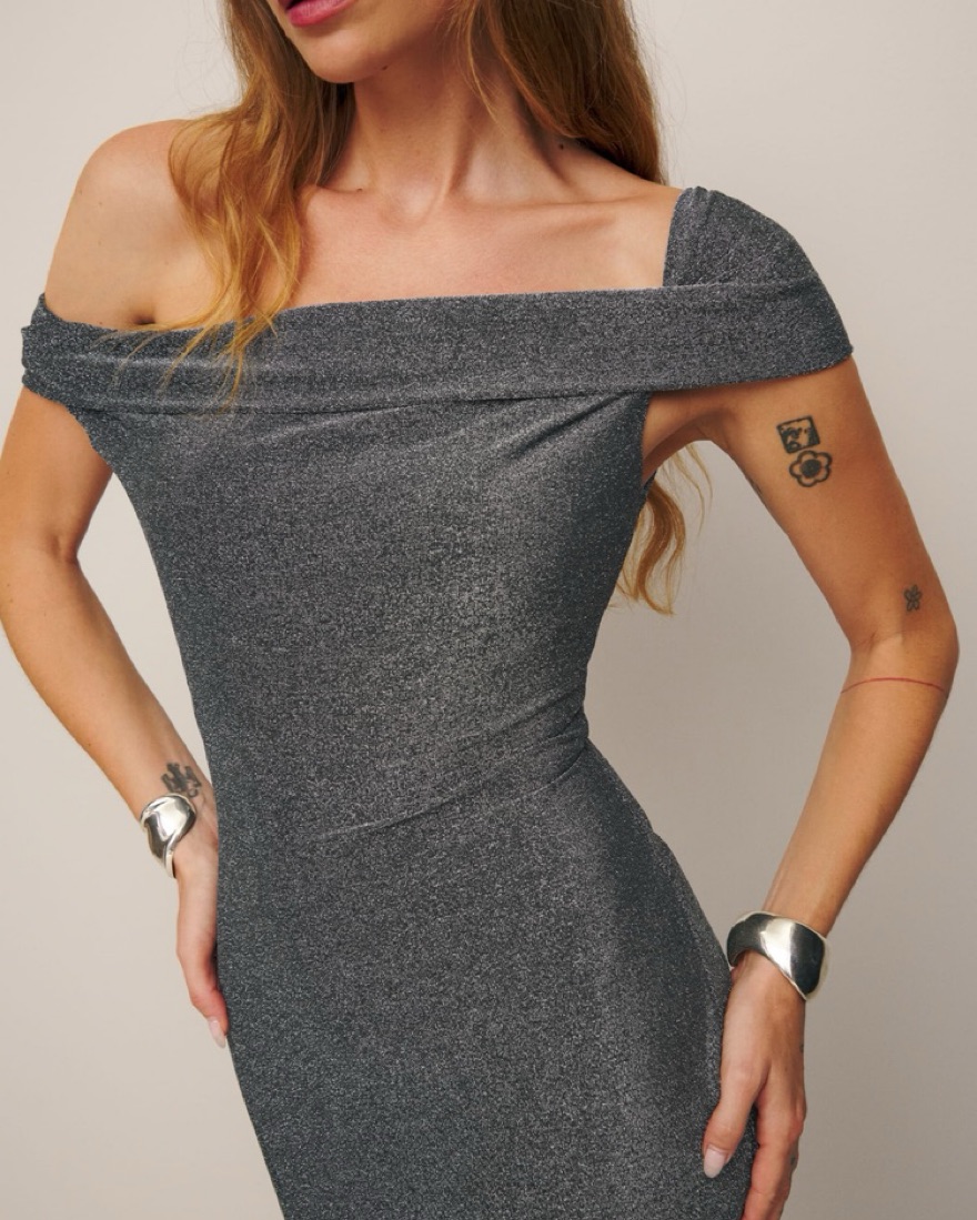 Deep silver sparkle - perfect condition. Very flattering. Size medium.