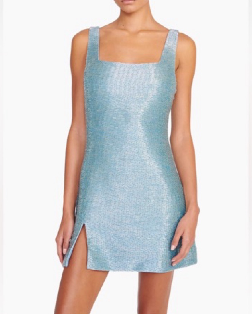 beaded dress in french blue! would fit anyone 0-6 depending how tight you would want it - pricing low to account for shipping 🫶🏼