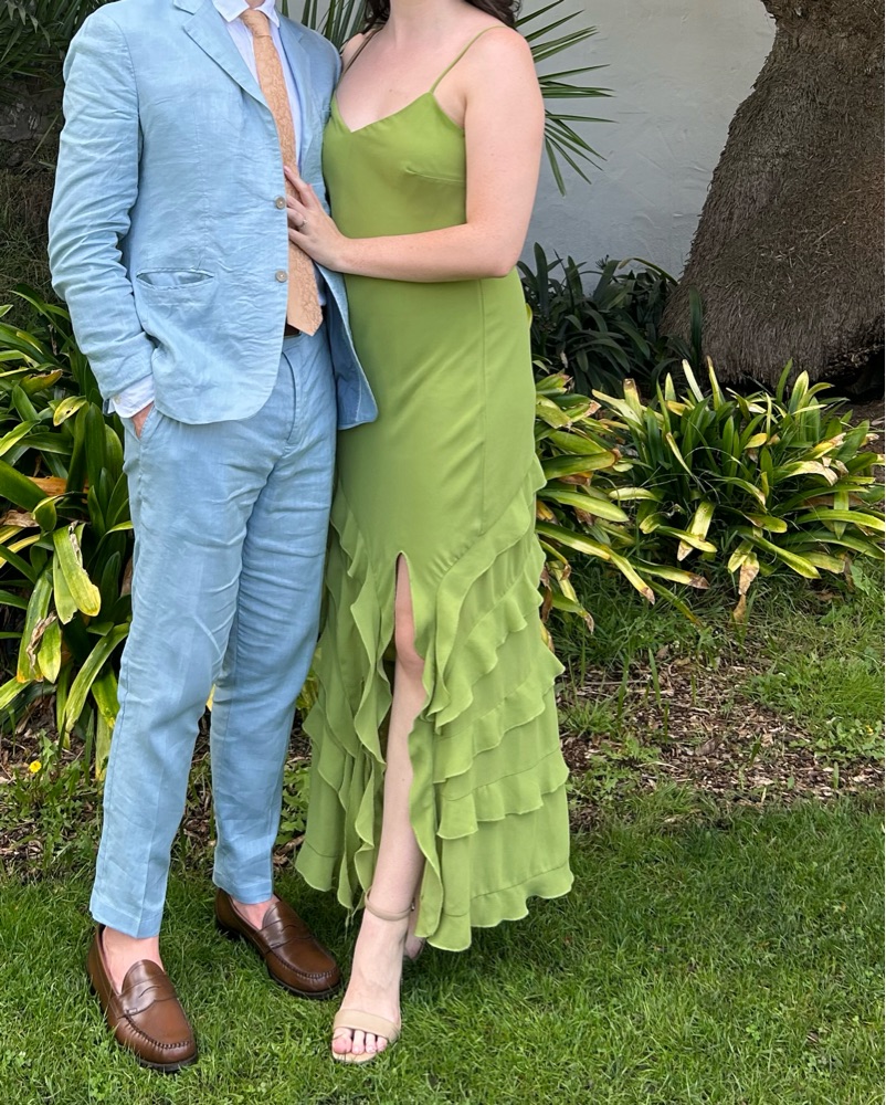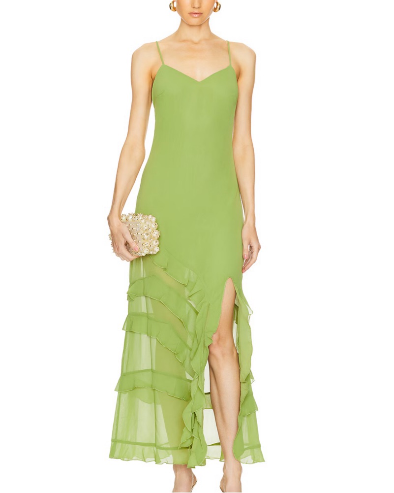Bardot Cantara ruffled maxi dress in “Apple Green”. Size XL fits like a US women’s 12! Perfect wedding guest dress—lightweight, adjustable straps, and easy to dance in!