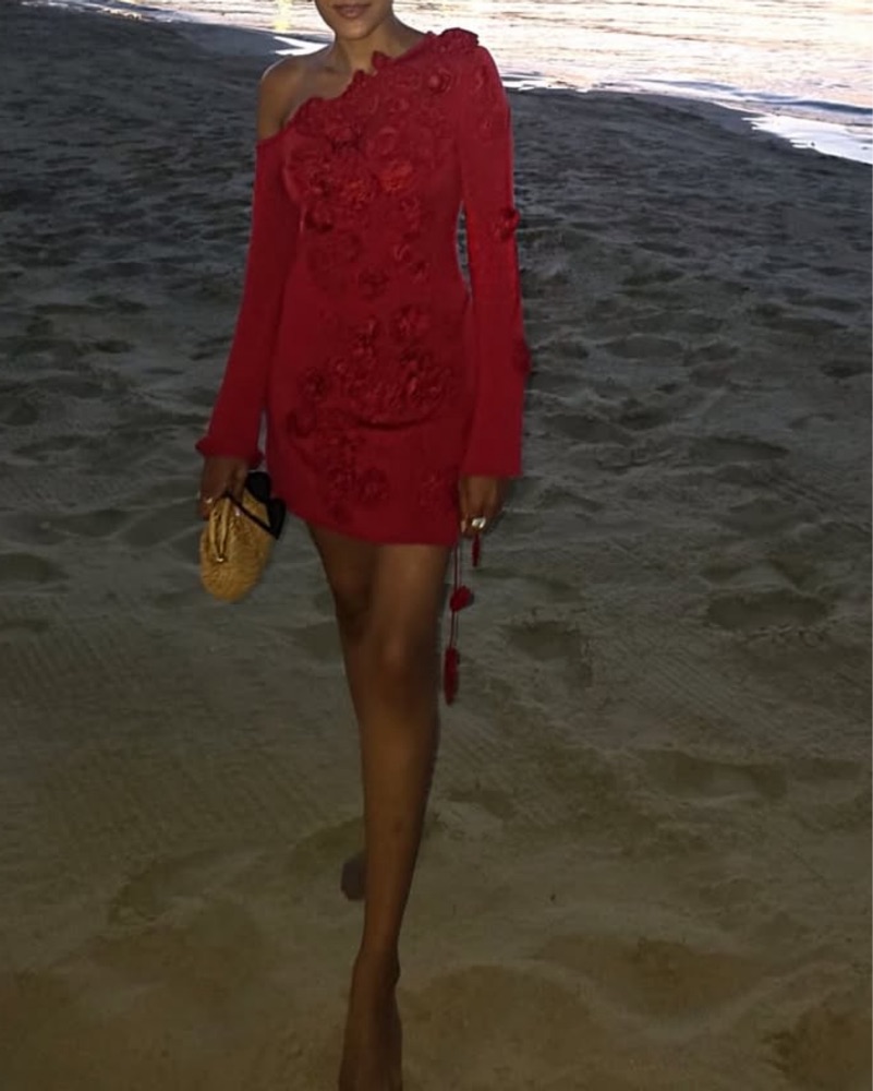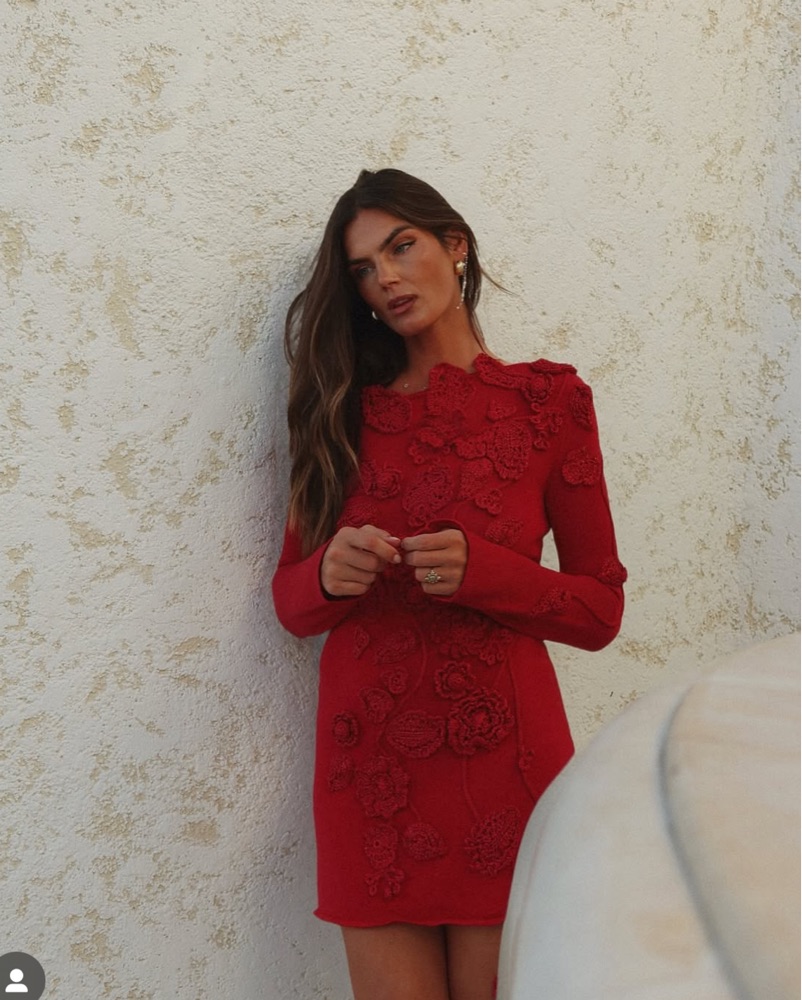 Cult Gaia Long Sleeve Off Shoulder Mini Red Crochet Dress