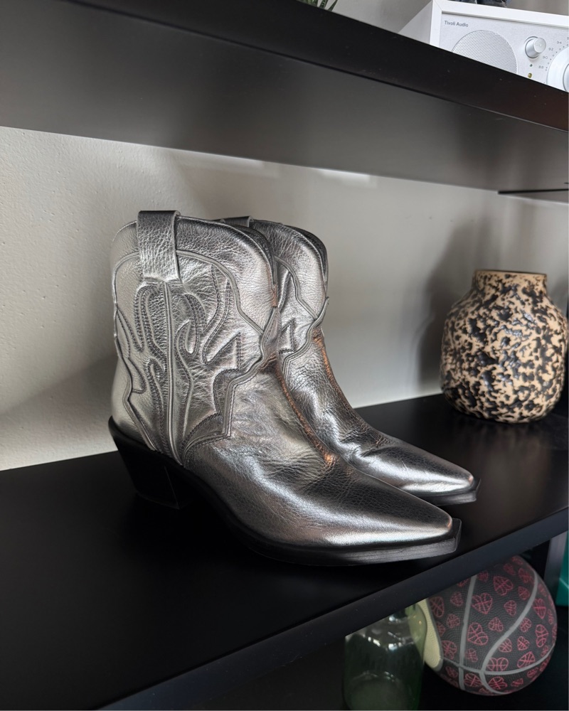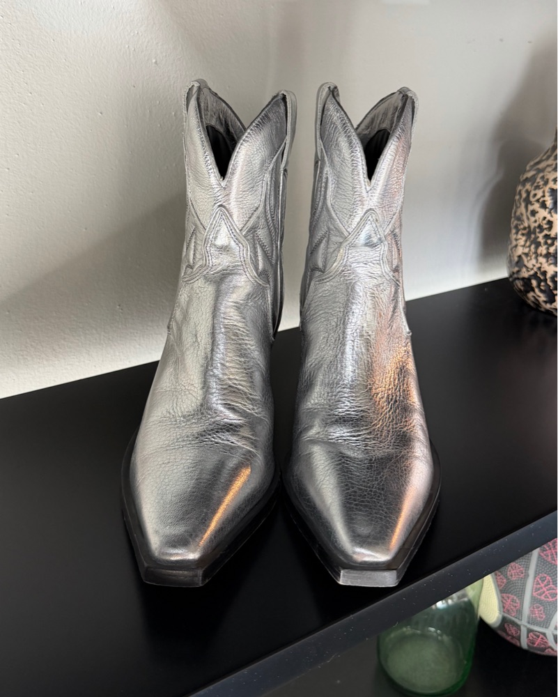 Super cute metallic silver ankle Cowboy Boots! Great condition worn once. Women’s size 10, fit true to size!. Perfect for stagecoach and rodeo!