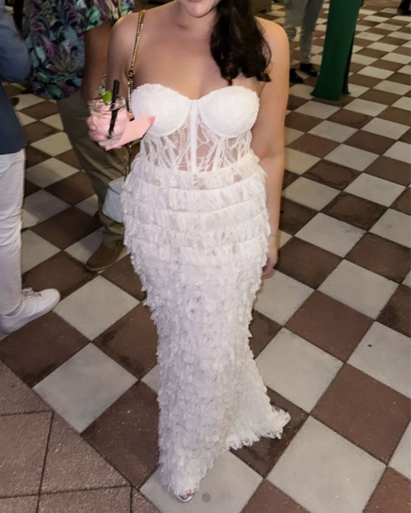 Lace bustier gown, semi sheer, taken in to fit closer to a size medium/ size 8
