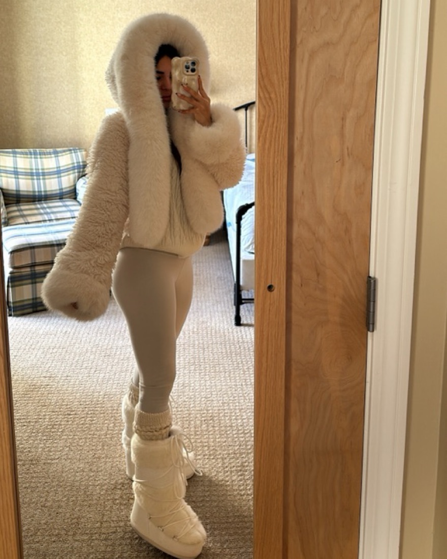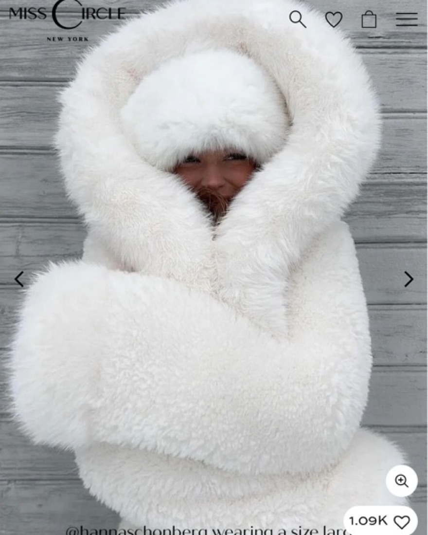 The viral white hooded jacket. Please take care of her since she’s white!