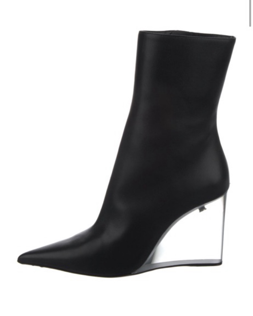 Amina Muaddi Pernille Glass Wedge Boots. A literal statement shoe! Size 38