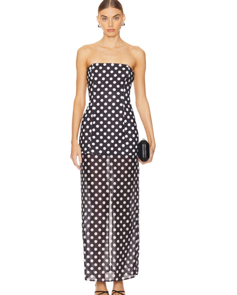 Worn once for a wedding, great condition. Bottom half is sheer, top half is stretchy.