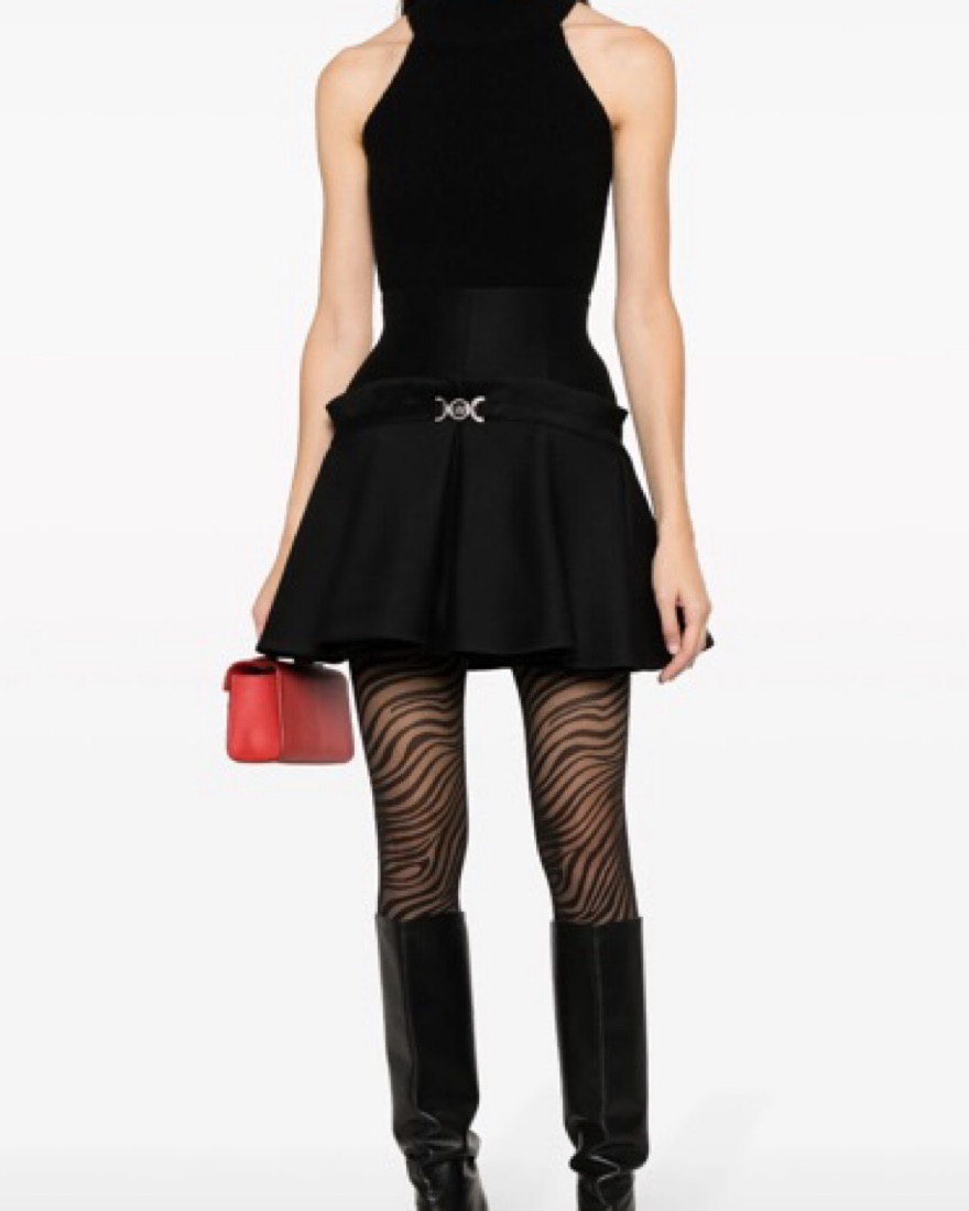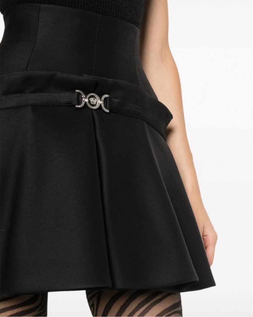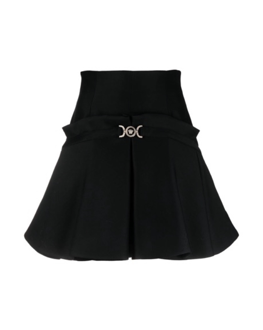 Embellished with the iconic Medusa '95 hardware, this Versace mini skirt is made from a wool and silk blend in a structured design. Box-pleat inserts offer a sense of movement to the high-waisted garment.